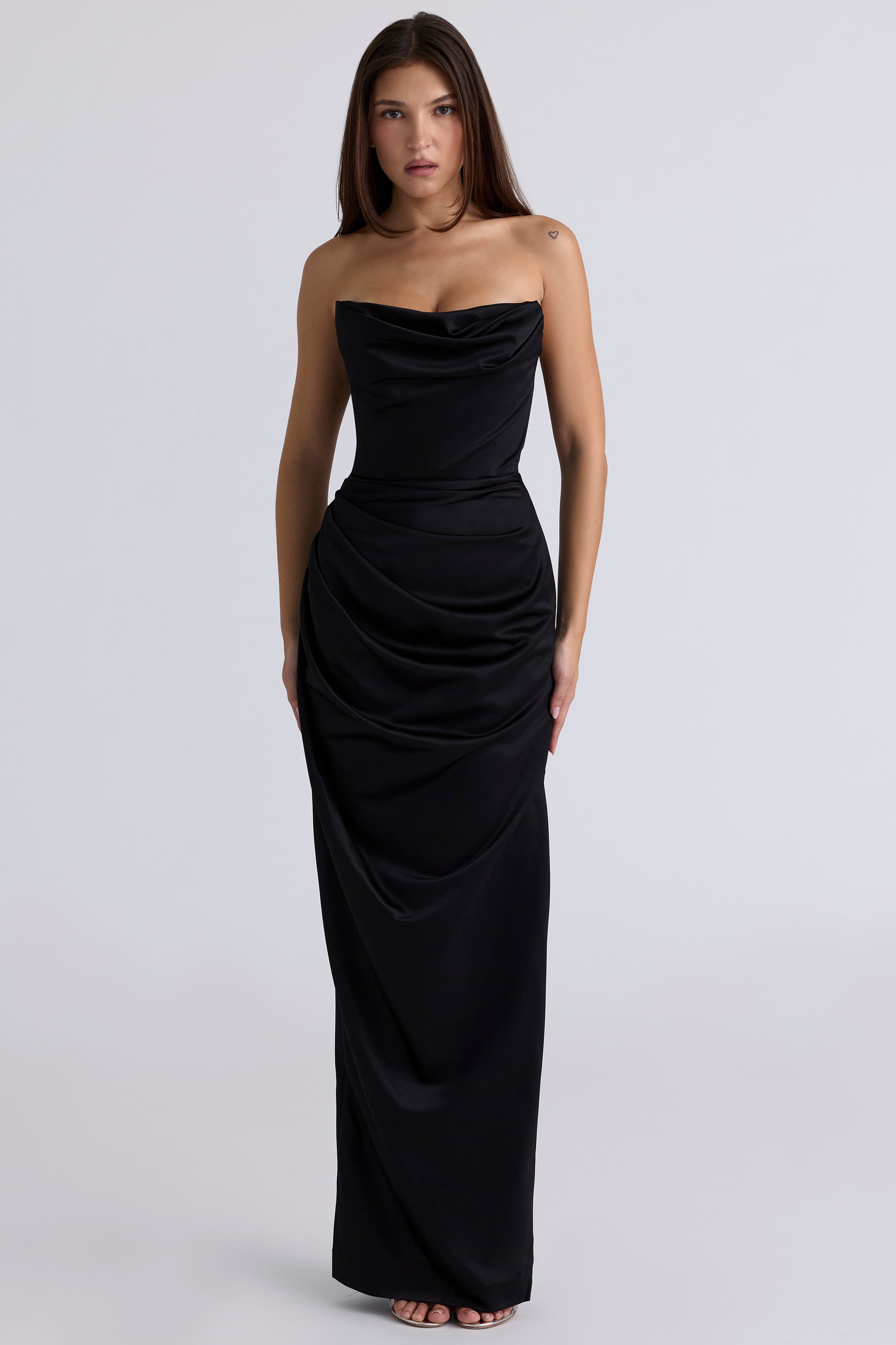 It's all about feminine tones and languid, sexy drapes with 'Adrienne'. It's cut from our ultimate high quality weighty and lustrous duchess satin. It drapes sexily across the bust and cinches the waist. The internal structure is specially boned for ultimate lift and support and the corsetry continues through the the back and the sides. The bodice is cut in a balconette shape and sports our extra special side boob boning to give you ultimate uplift and cleavage and it's lined with a textured crepe to provide a non slip effect.