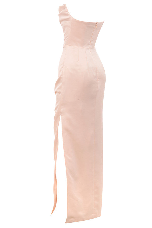 It's all about feminine tones and languid, sexy drapes with 'Adrienne'. It's cut from our ultimate high quality weighty and lustrous duchess satin. It drapes sexily across the bust and cinches the waist. The internal structure is specially boned for ultimate lift and support and the corsetry continues through the the back and the sides. The bodice is cut in a balconette shape and sports our extra special side boob boning to give you ultimate uplift and cleavage and it's lined with a textured crepe to provide a non slip effect.