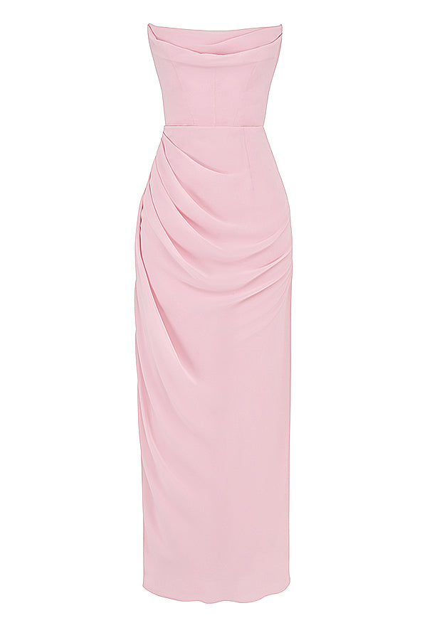 It's all about feminine tones and languid, sexy drapes with 'Adrienne'. It's cut from our lightweight georgette that drapes sexily across the bust and cinches the waist. The internal structure is specially boned for ultimate fit and support and the corsetry continues through the back and the sides. The bodice is cut in a balconette shape and sports our extra special side boob boning to give you ultimate uplift and cleavage and it's lined with a textured fabric to provide a non slip effect.