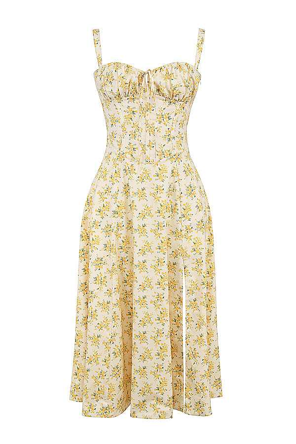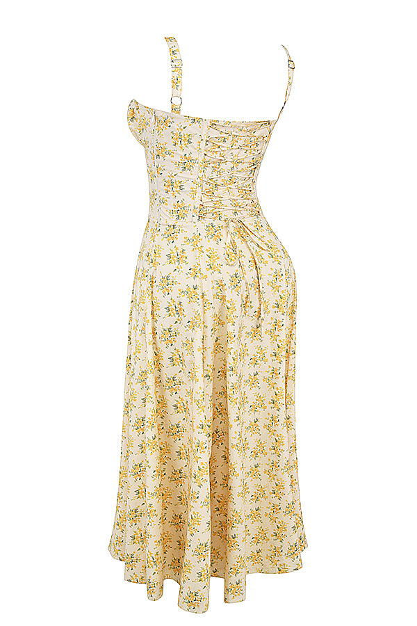 Carmen Buttercup Vintage Floral Print Cotton Bustier Sundress