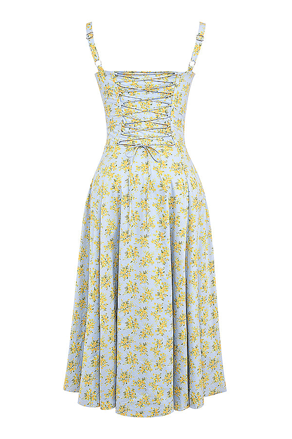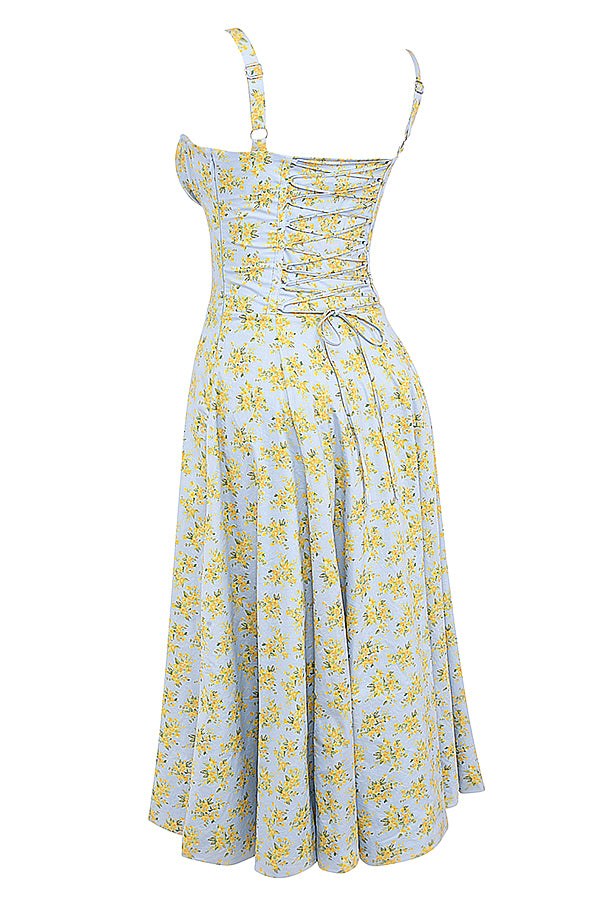 Carmen Soft Blue Vintage Floral Print Cotton Bustier Sundress