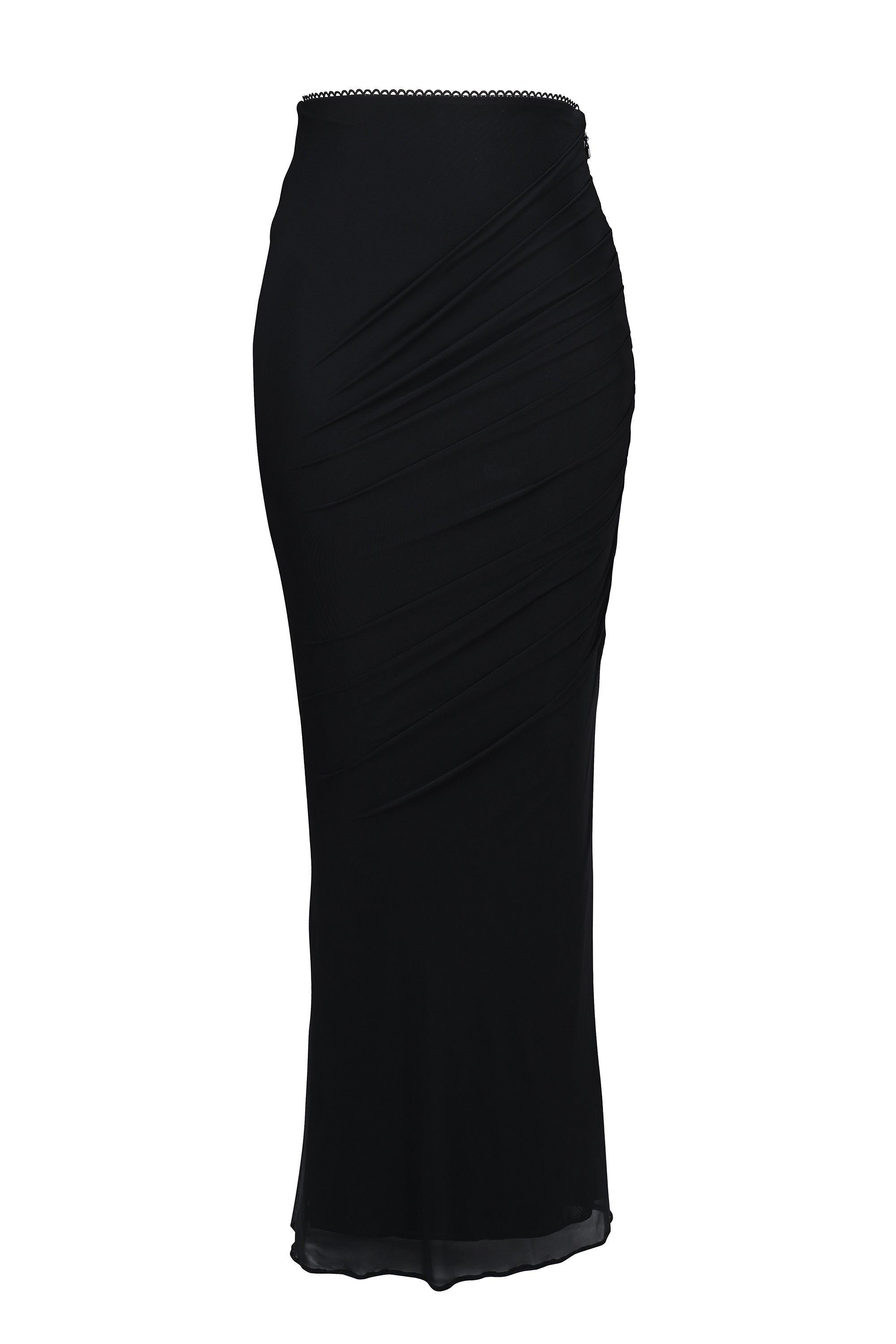 Subtle detailing makes for statement pieces. The 'Cassidy' Skirt is a standout design that showcases the best of House of CB's signature styling. Beautifully draped soft mesh is bound with tulle to create a complimentary structure on top of a stretchy base that will flatter your silhouette from every angle. The shape drapes to the floor with a slight flare to create a natural curve. Not only that, it's super easy to wear – it has a side zip and is complete with a delicate trim around the waist.