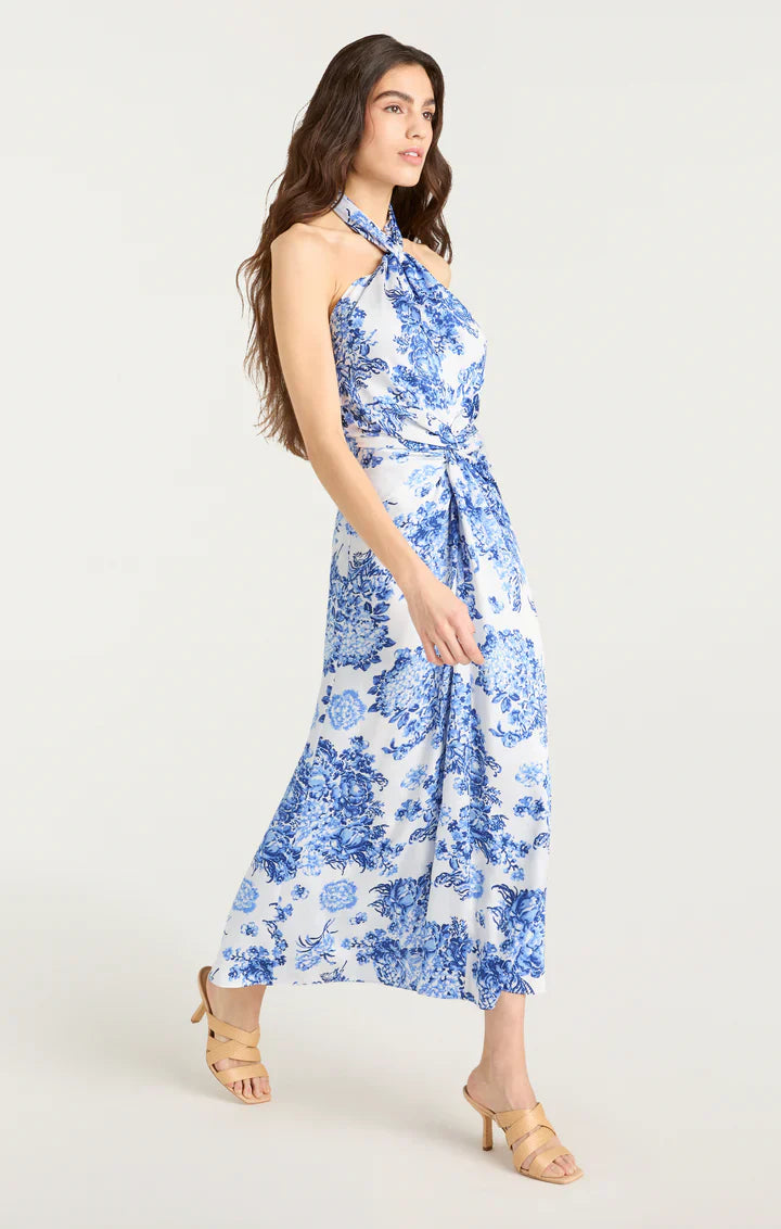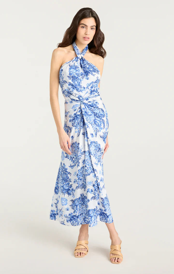 Elevate your style with the Costal Bouquet Coli Dress. Featuring a halter neckline, key slit, and gorgeous floral print, this midi dress exudes effortless sophistication. Perfect for any occasion, it's a must-have for any fashion-forward wardrobe.