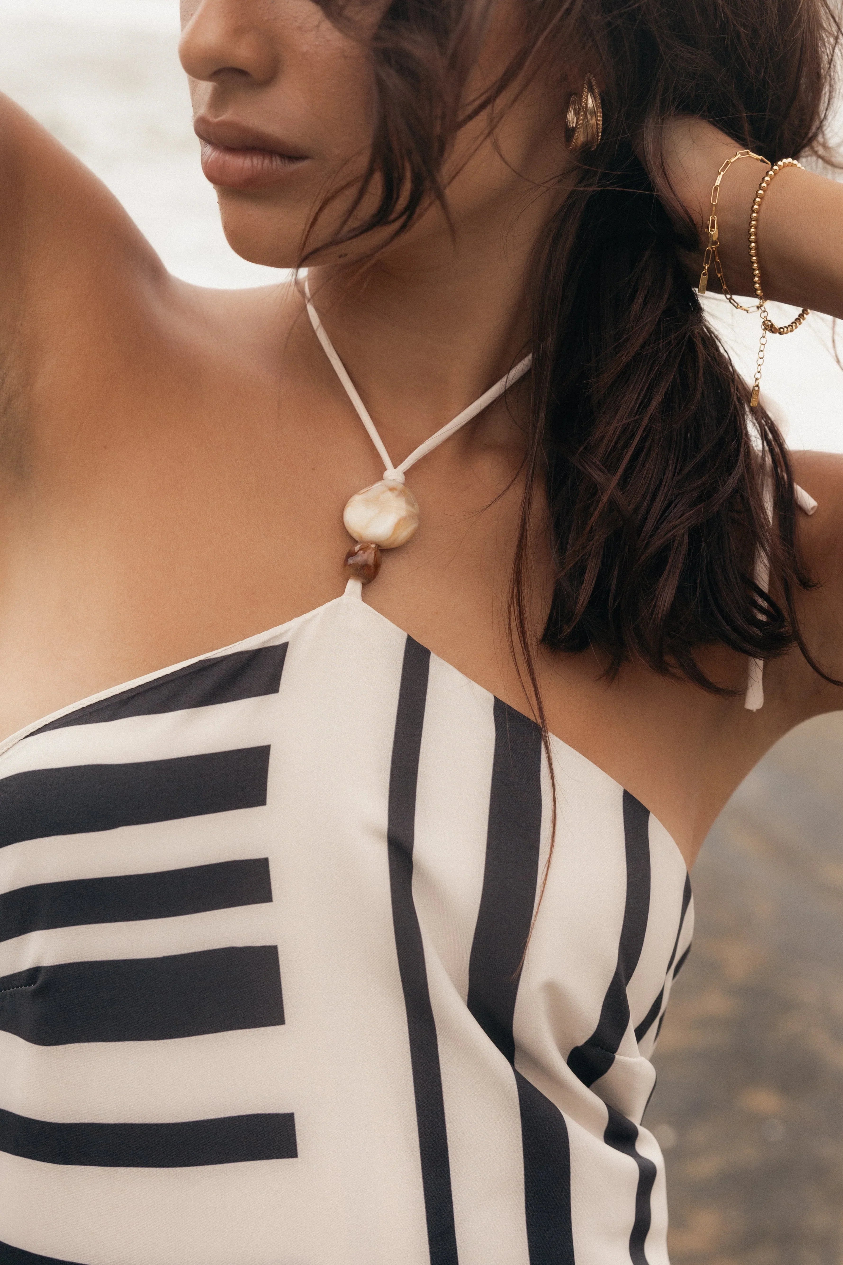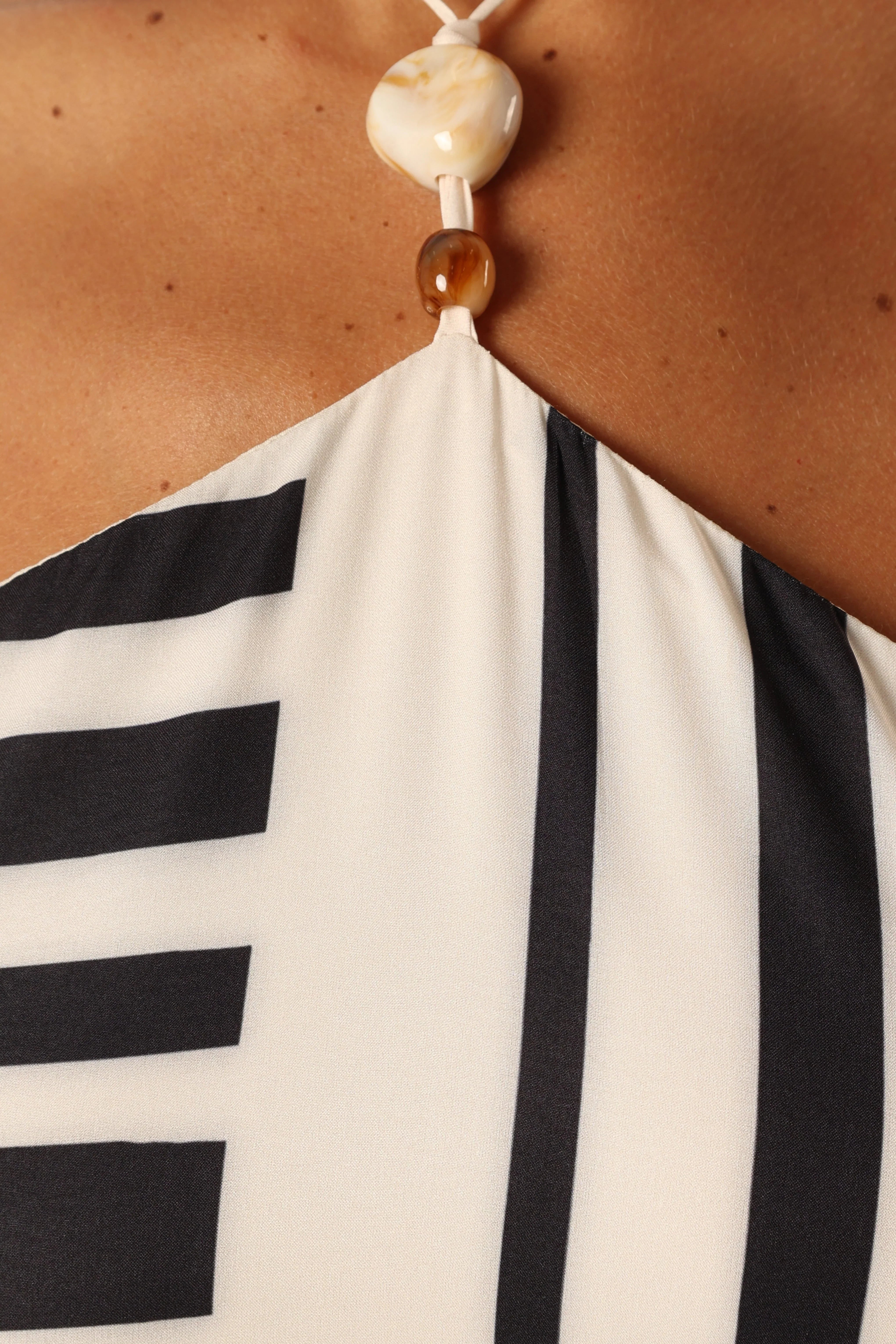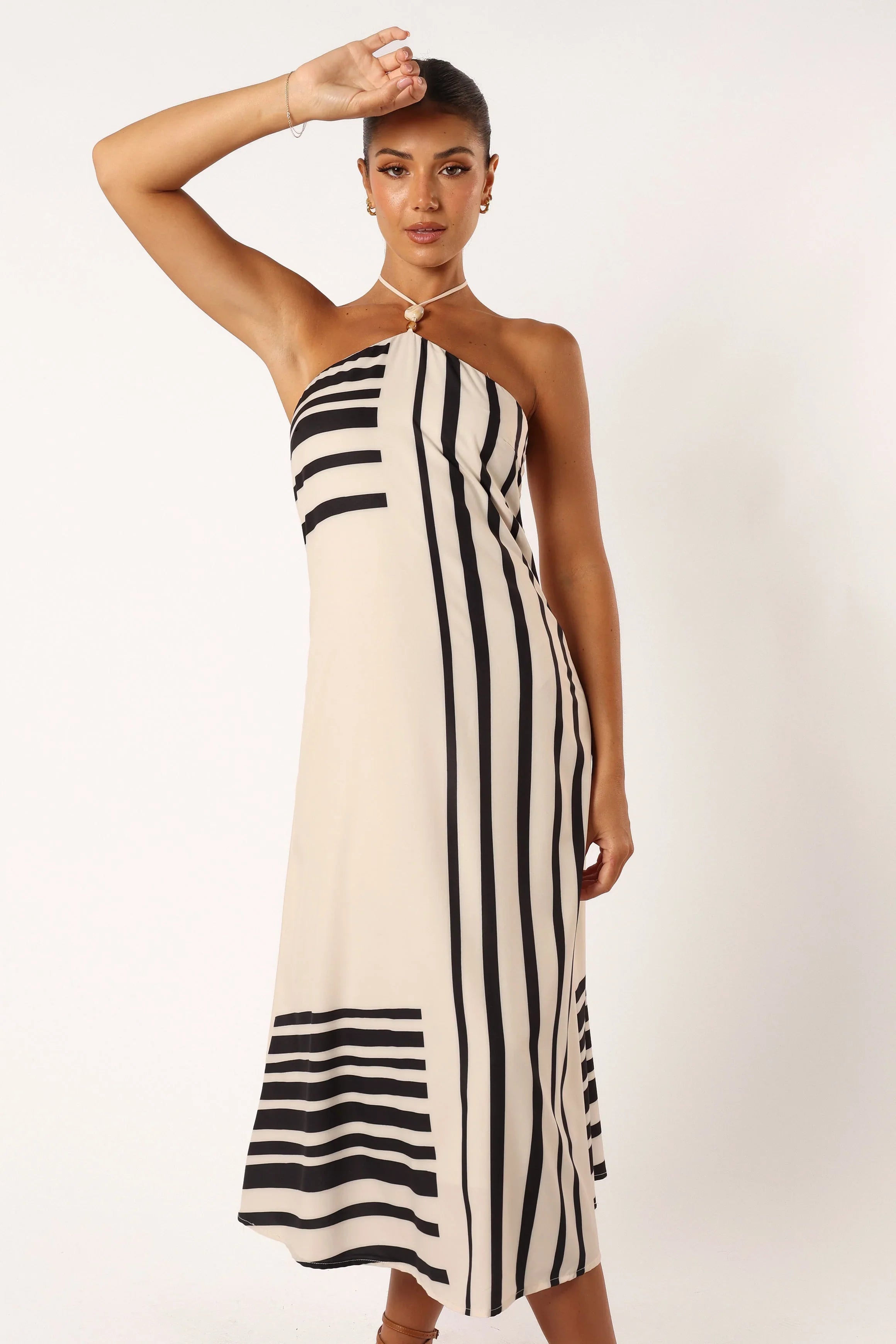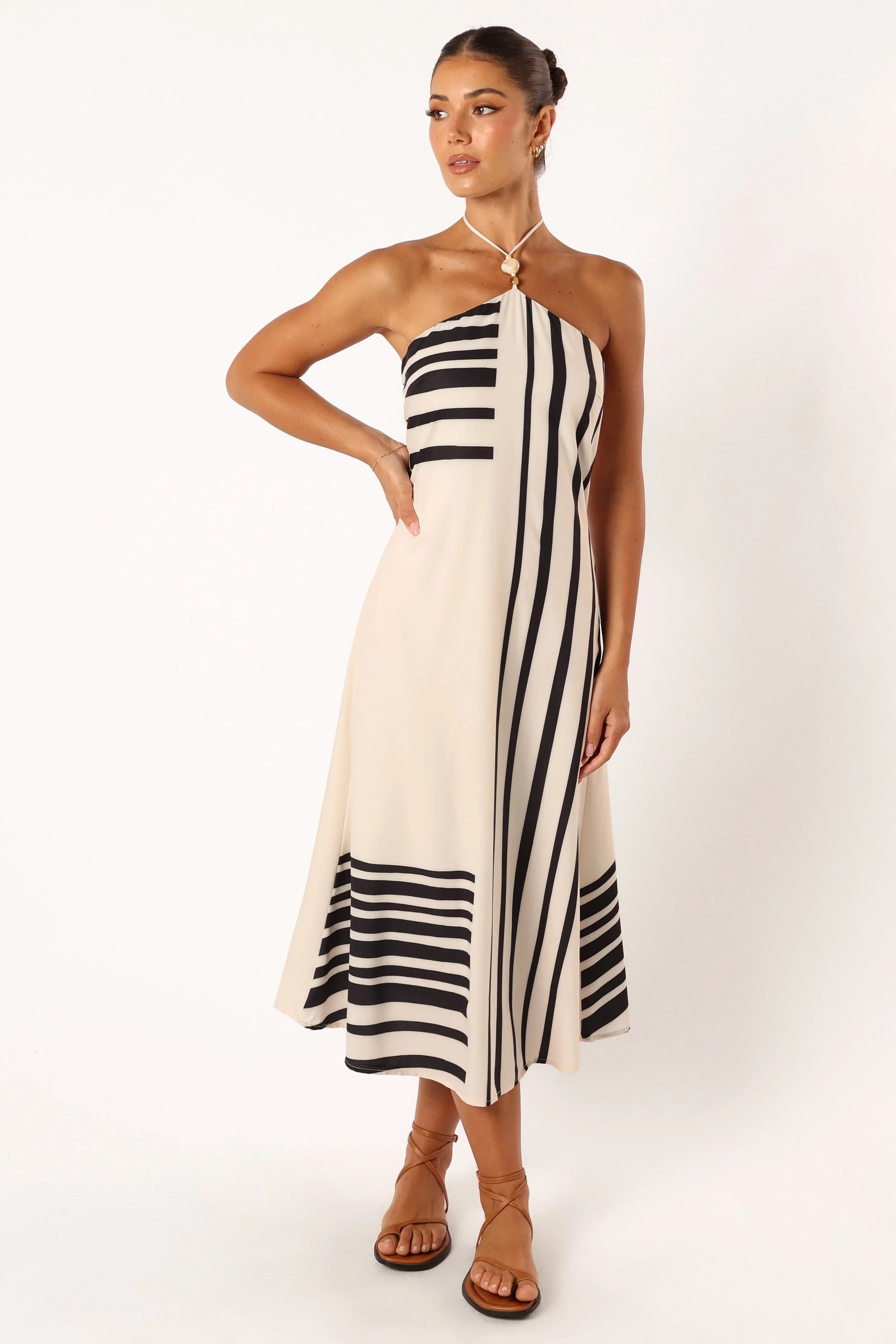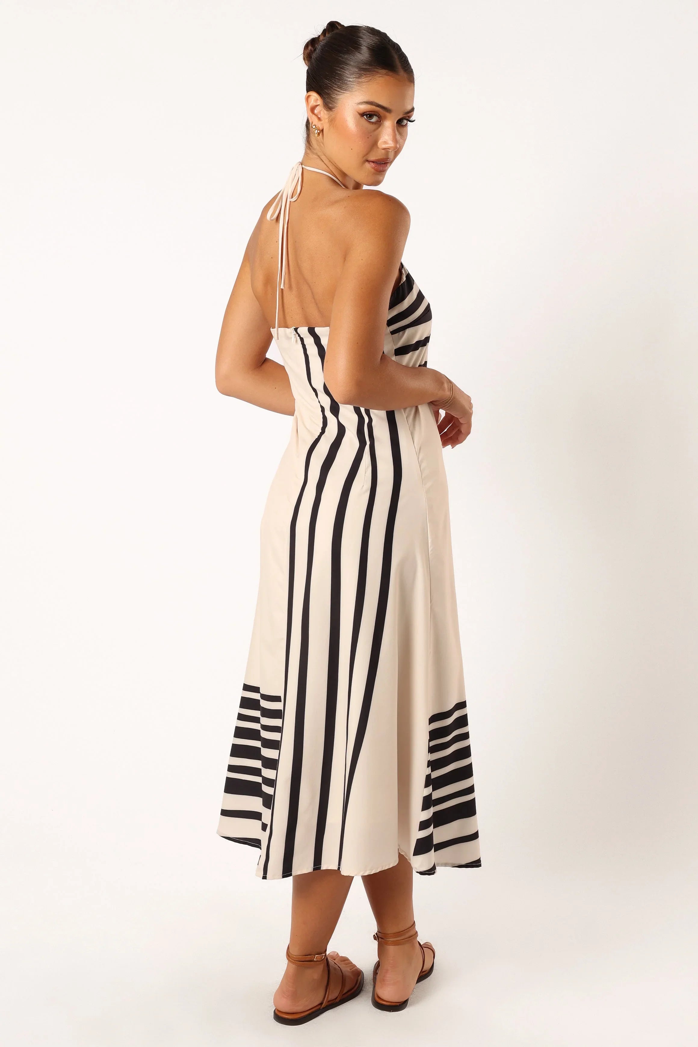 DETAILS The epitome of elegance, this dress is made for the modern fashionista. With its midi length and halter neck tie design, it looks great on all body shapes. The elasticised neckline gives you a comfortable fit and adds a touch of class to your look.