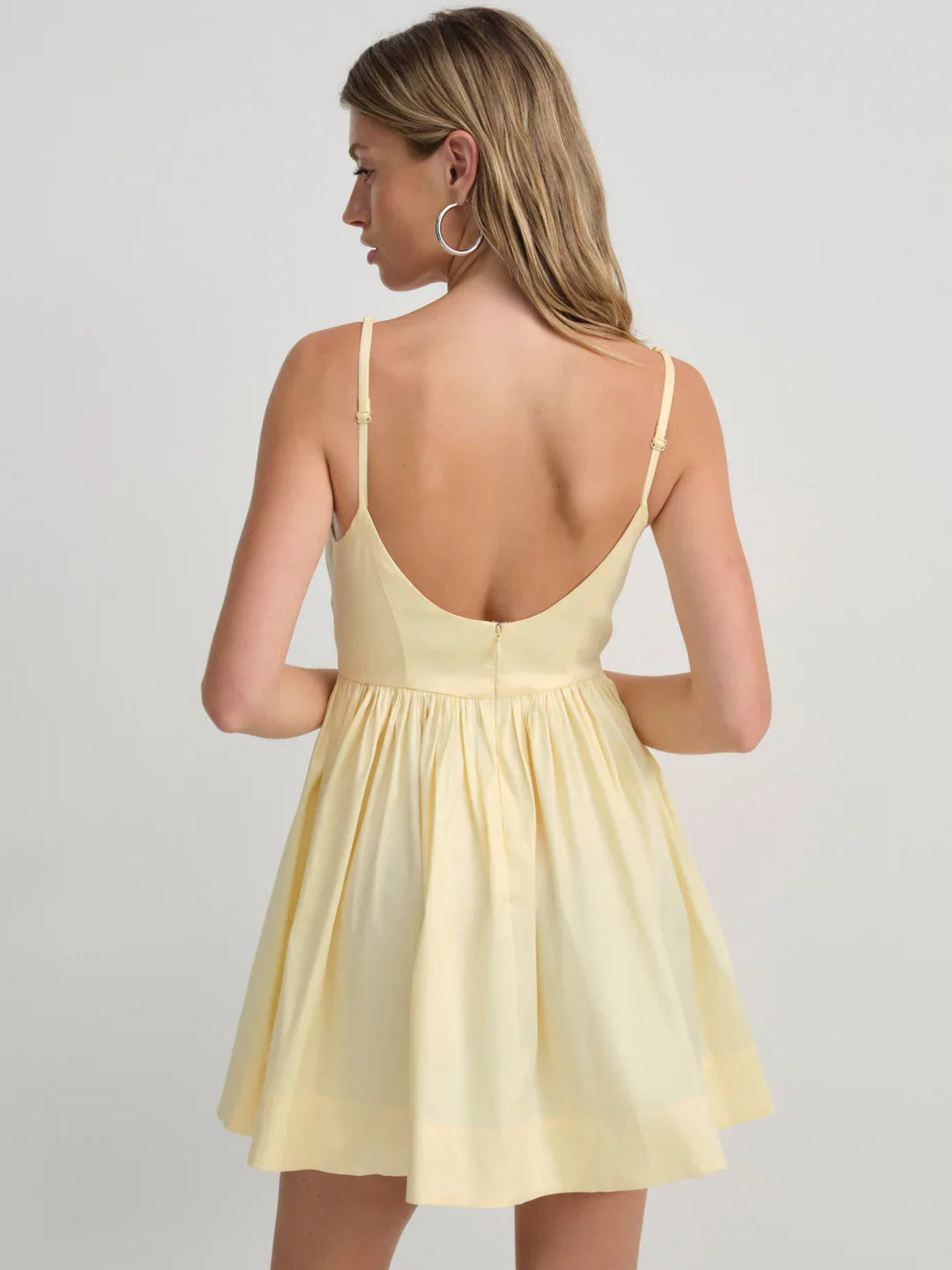 Made for the sun-drenched muse, the Doris mini dress embodies pure femininity. Crafted in a crisp pastel taffeta, this yellow mini dress is adorned with lace trims, and spotlights a ruched bust and center front bow detail.