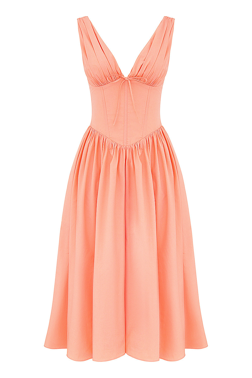 Channeling understated elegance, 'Emmelina' is an effortless wear-anywhere style in a gorgeous sorbet hue. The cotton rich fabric is blended with stretch and beautifully designed with a gathered bust. The plunge neckline perfectly mirrors the open back and the bodice is corseted to cinch the waist.