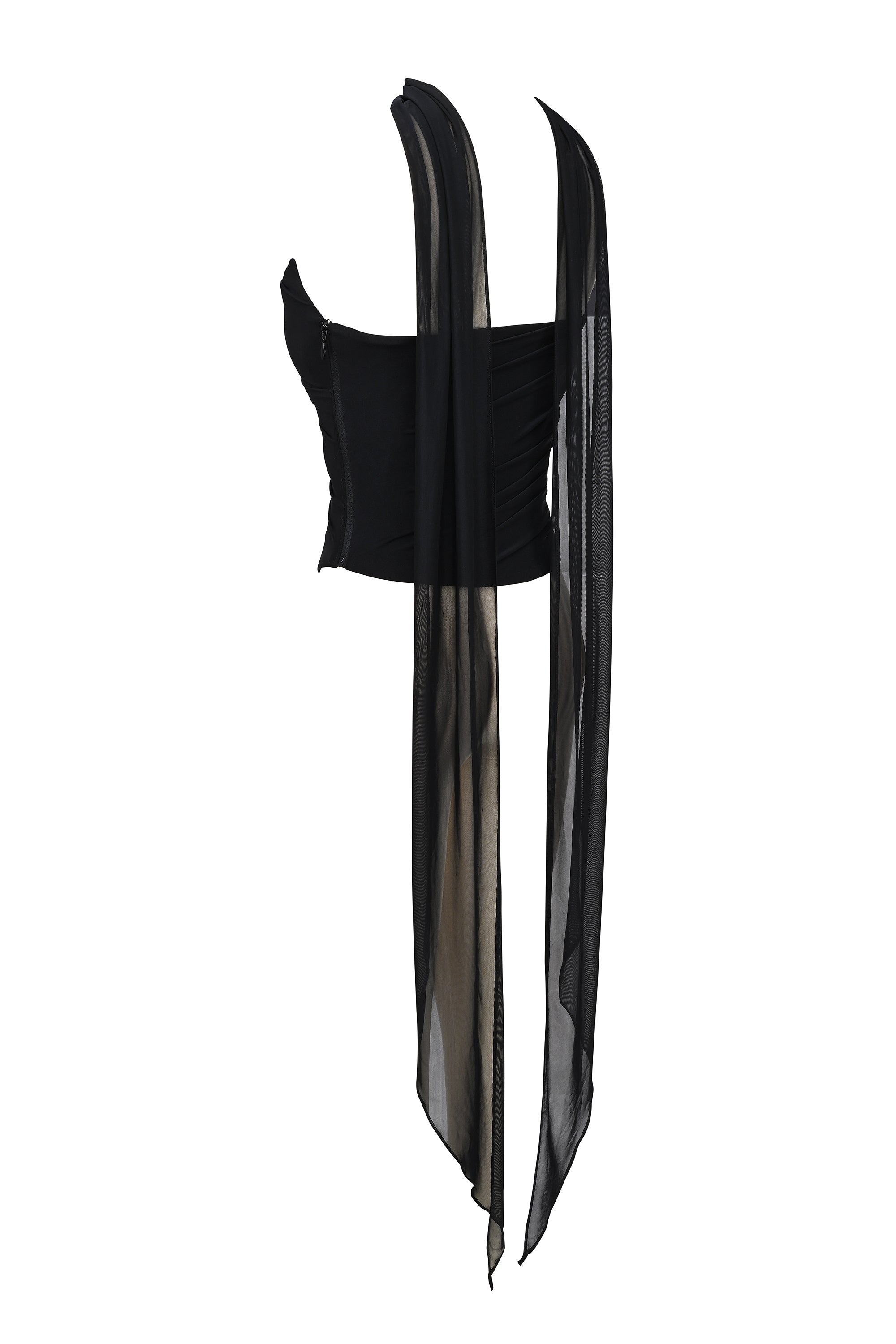 Bring the drama in the 'Hallie' Corset Top. This beautifully constructed piece brings structural corseting and soft draping together – it's what we do best. The soft mesh fabric is carefully crafted into a strapless silhouette that frames your figure, while our signature boning ensures it flatters in all the right places (there's even a side zip for added ease). Don't worry, there's more – the 'Hallie' comes with an optional neck tie. It's a soft, yet striking addition and a versatile option for dynamic styling day or night.