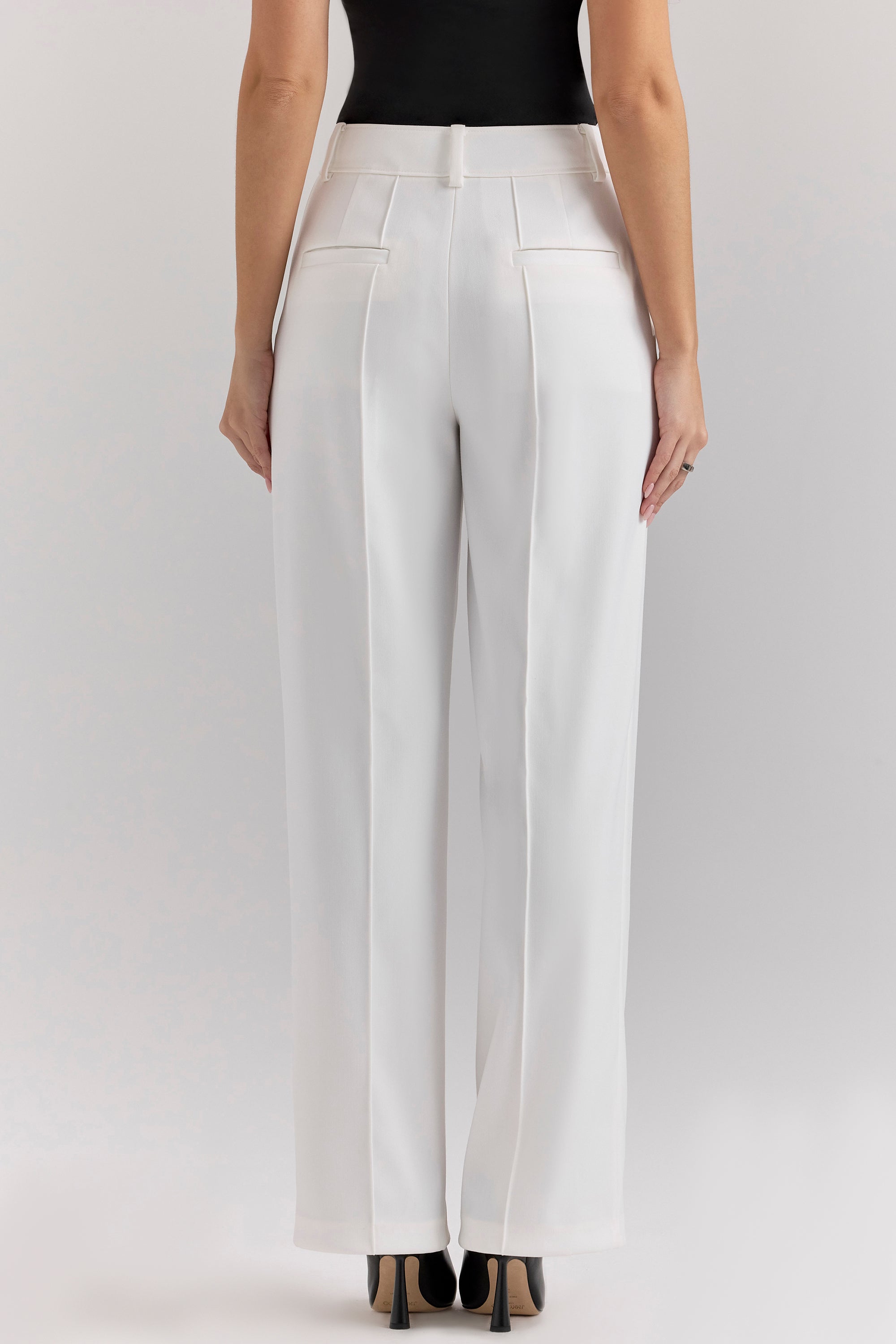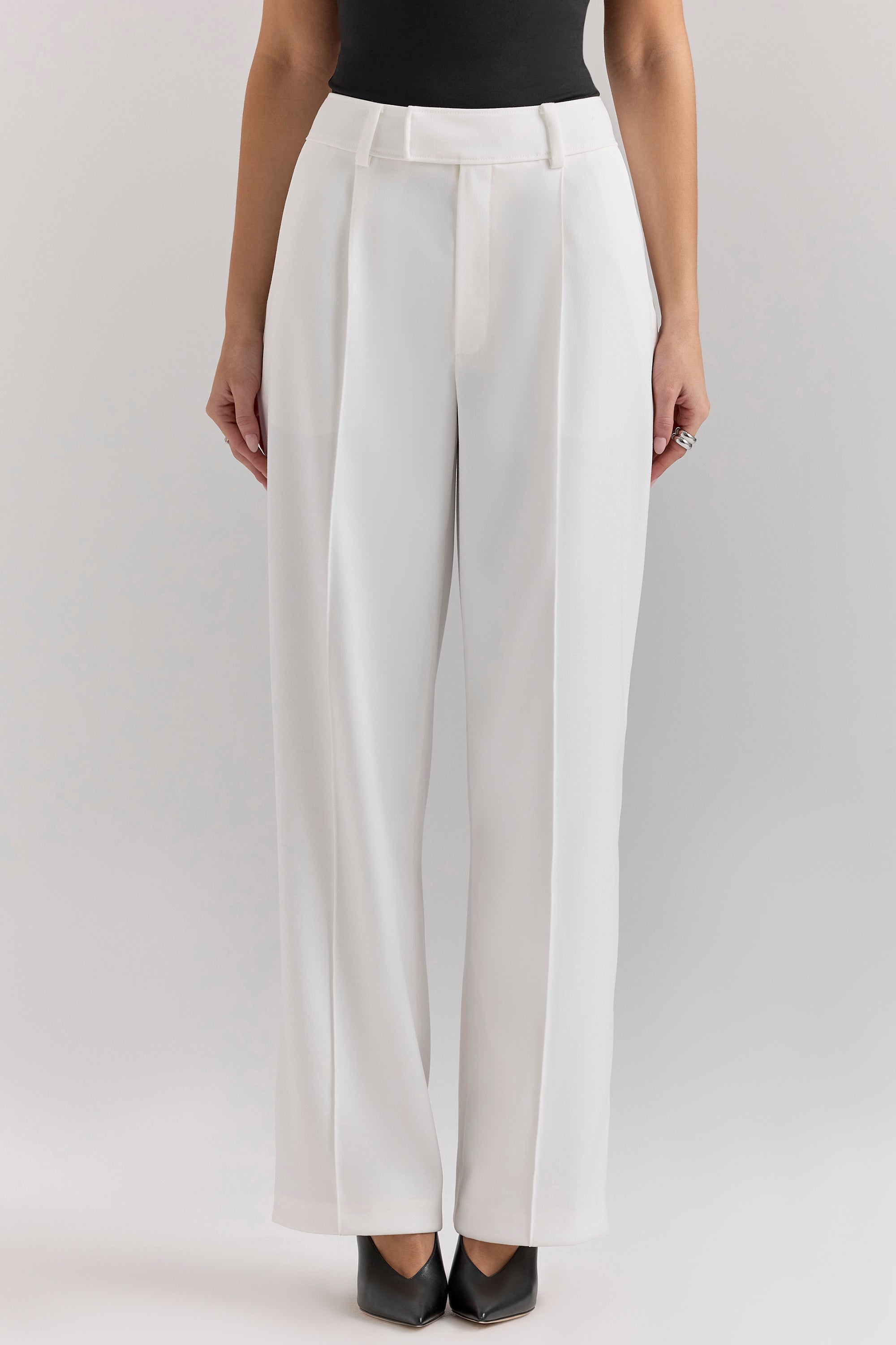 Hayden White Wide Leg High Waist Tailored Trousers