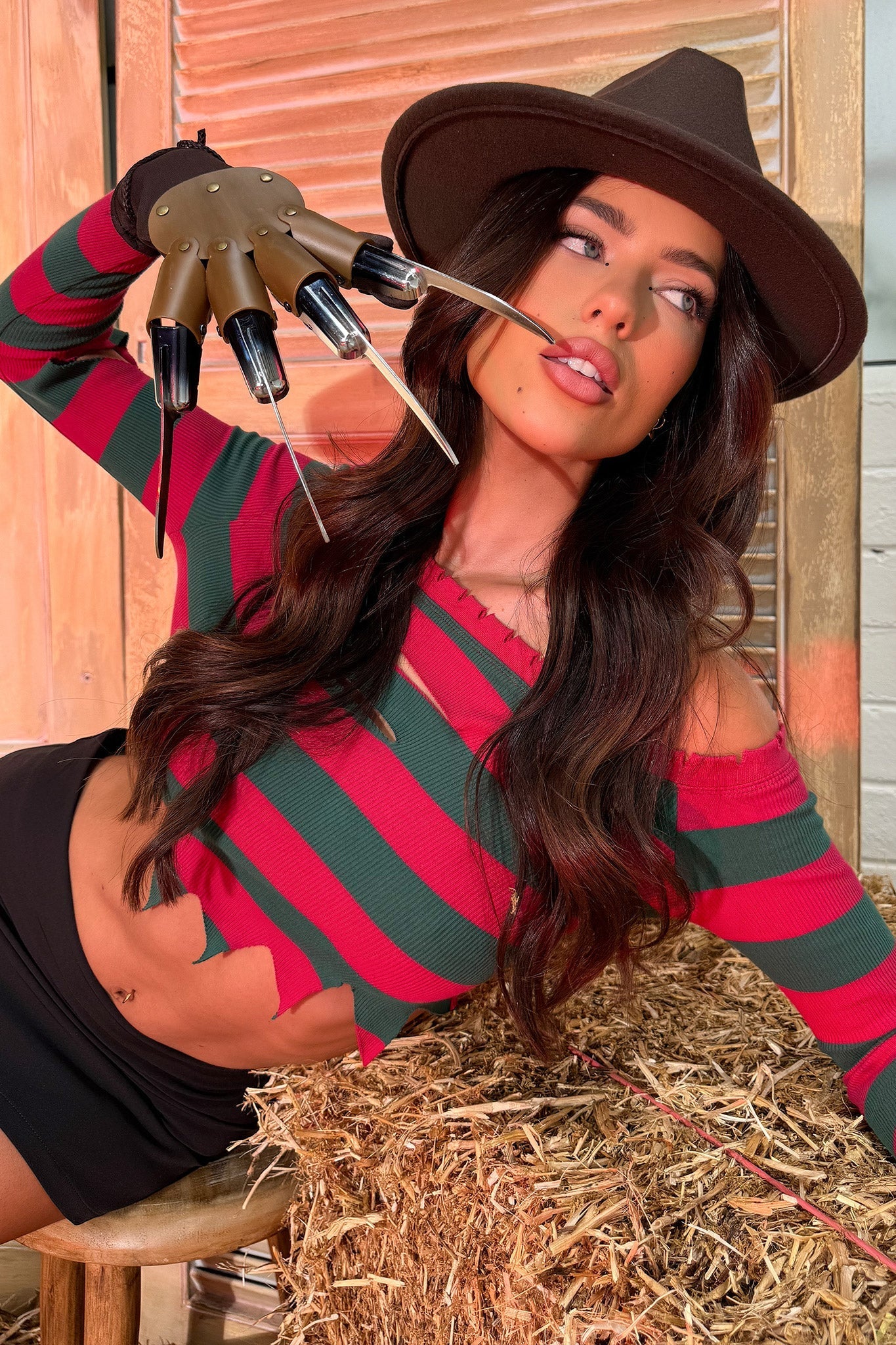 Get ready to cause some trouble in the Im a Nightmare Top. This long sleeve top features a unique green and red striped design, as well as a distressed and ripped look. Complete the rebellious look with the matching Im a Nightmare Skort and some statement accessories!