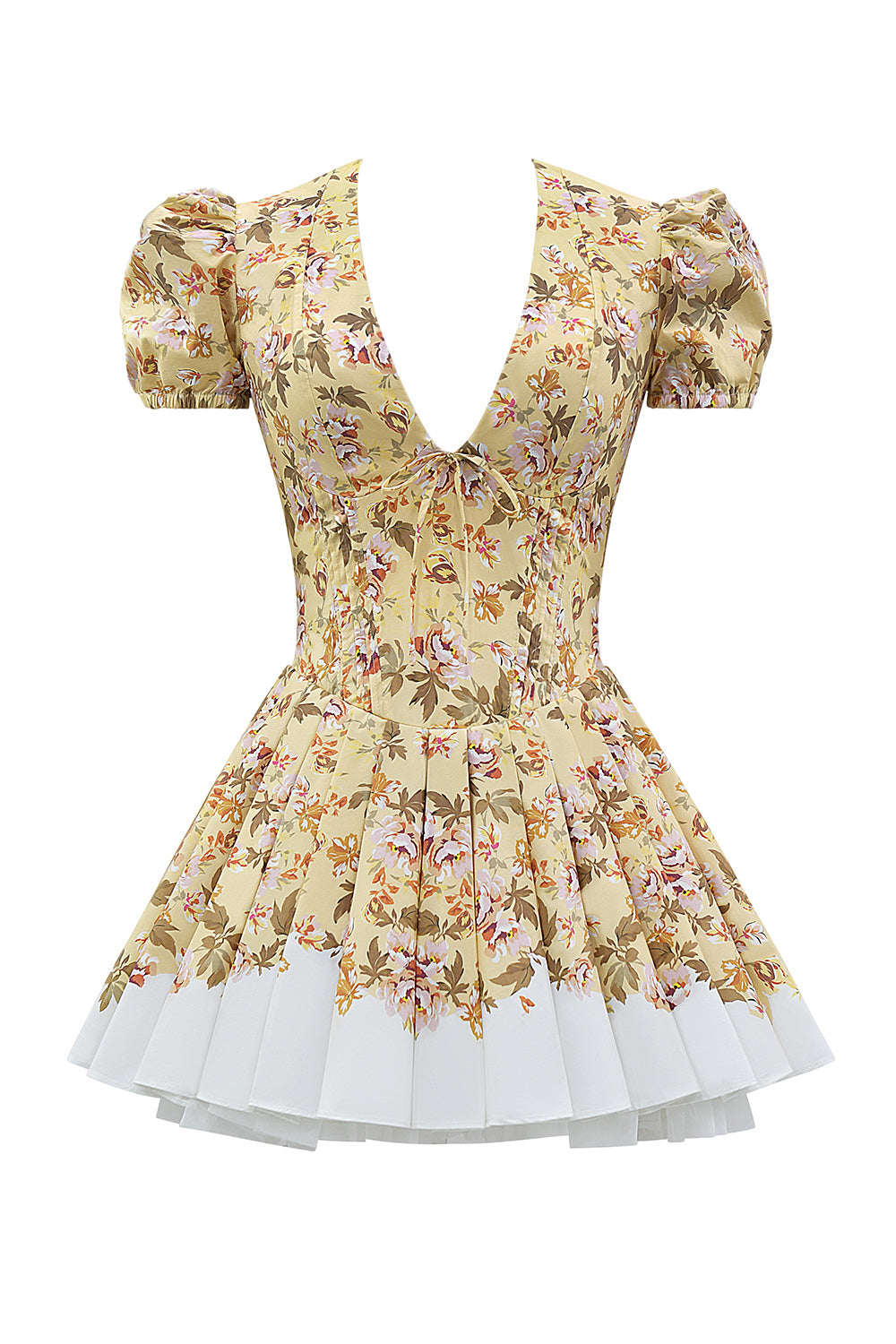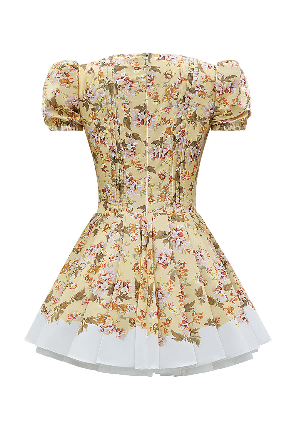 This pretty print has a rich Autumnal feel that's perfect for the transitional season. Printed in a Honeyflower design, this stretch cotton-rich mini dress has a fitted bodice and softly pleated mini skirt. The skirt is beautifully suspended by way of a tulle underskirt and features a white border trim to the hem.