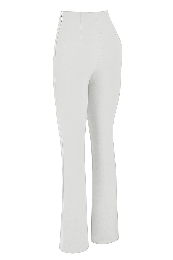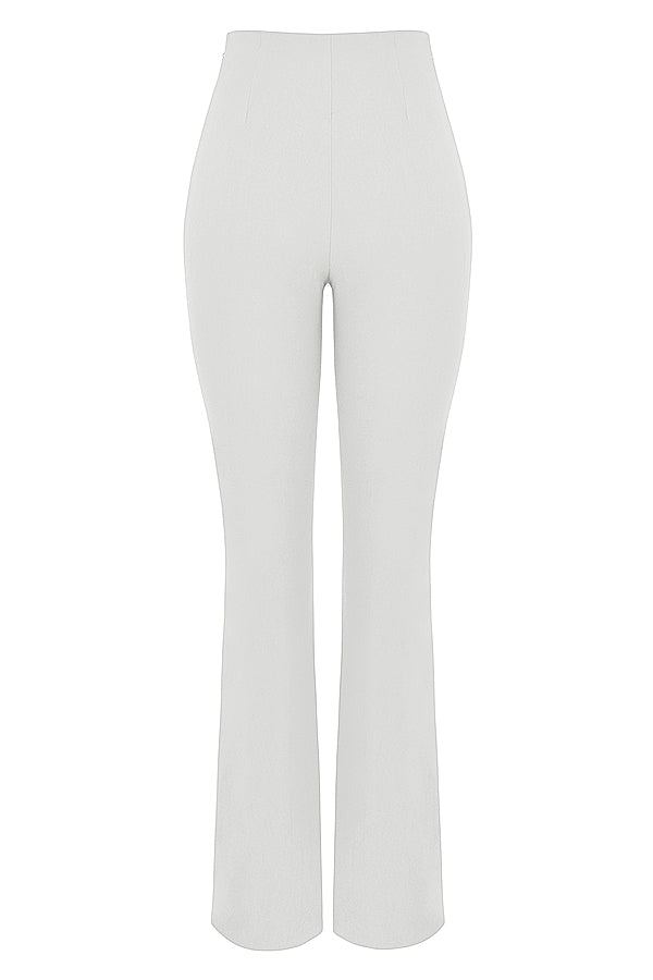 Clean lines and simple styling is what we love about our 'Laurel' trousers. Cut from our new high tension fabric for a sculpting fit, they sit flatteringly high on the waist and have fitted straight legs with a slight flare at the hem to sit perfectly over your highest heels. They have a zip to the left side for easy on and we love these paired with our 'Leala' top and 'Lola' high heels in white.