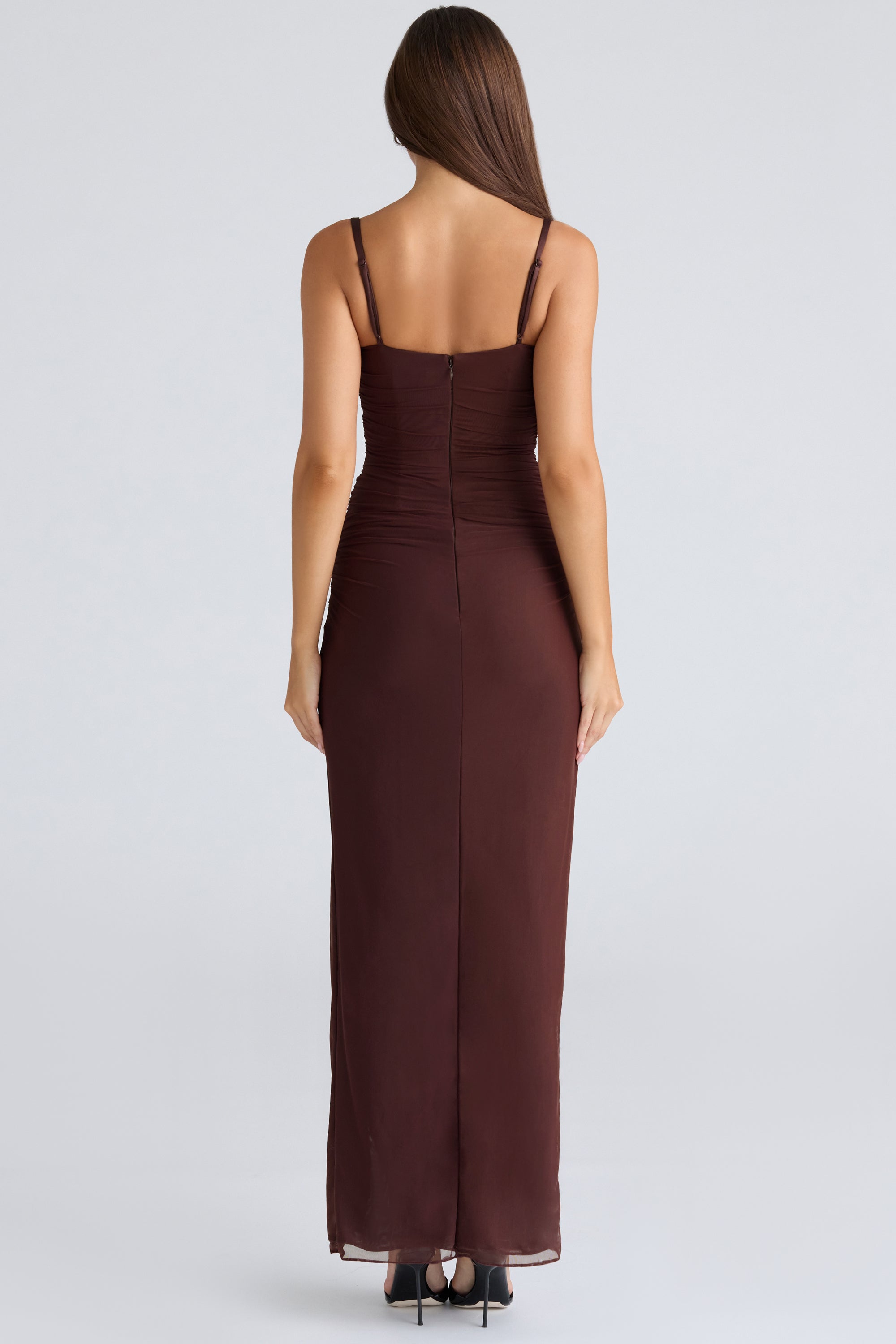 Deep tones are must this season and we're swooning over the 'Lini Dress'. It's elegantly constructed from soft stretch overlayed mesh with adjustable straps and an easy zip at the back. The shape is beautifully enhanced with our signature stretch power mesh lining, and uses sculpting technology to act like shape-wear for an ultra-flattering fit. Delicate ruching and gathering continues to embrace the maxi silhouette with a natural fluidity. It's complete with a dramatic side split (for showing a little bit of leg) – so when it comes your next event, think of the Lini.