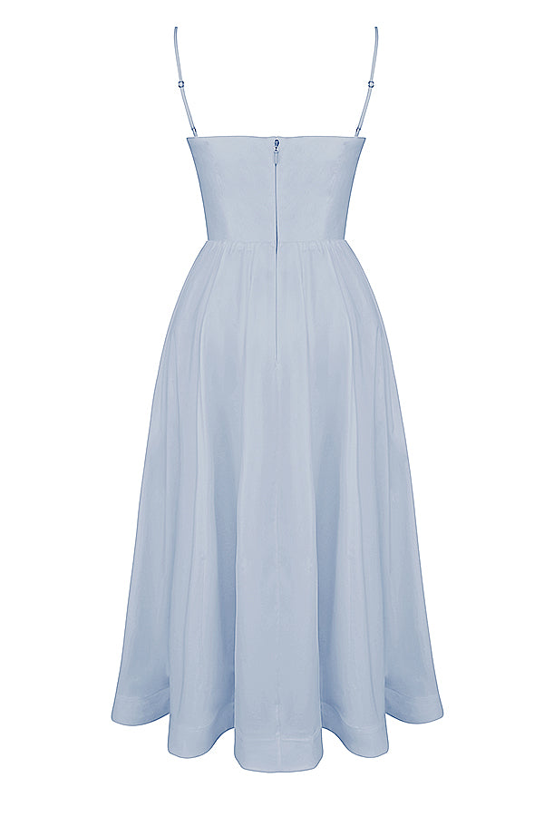 Feminine, floaty and perfect for Summer. Cut from breezy stretch cotton for a fresh feel in soft blue, 'Lolita' has a boned bodice to cinch the waist,