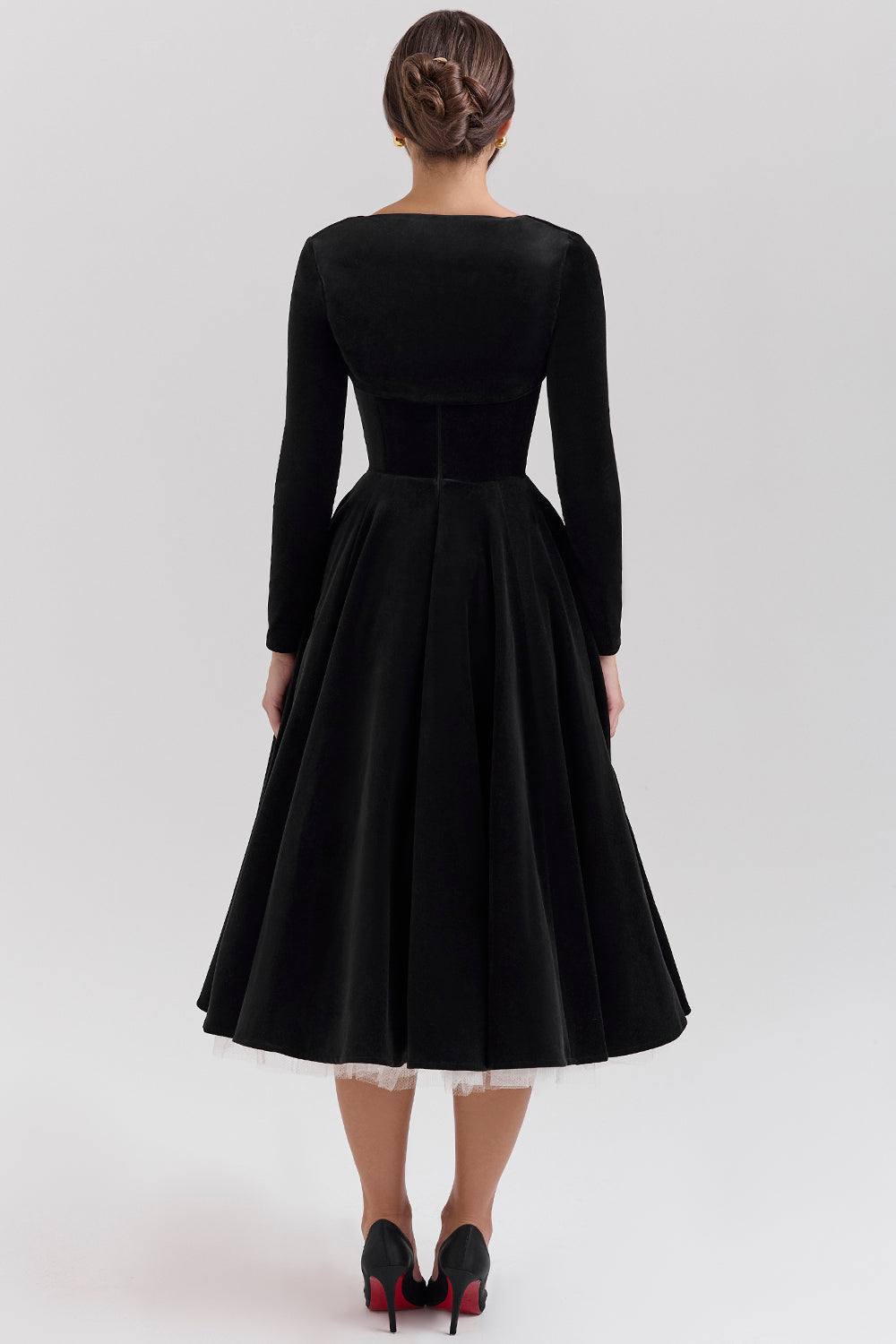 Mademoiselle Black Velvet Tulle Midi Dress + Bolero