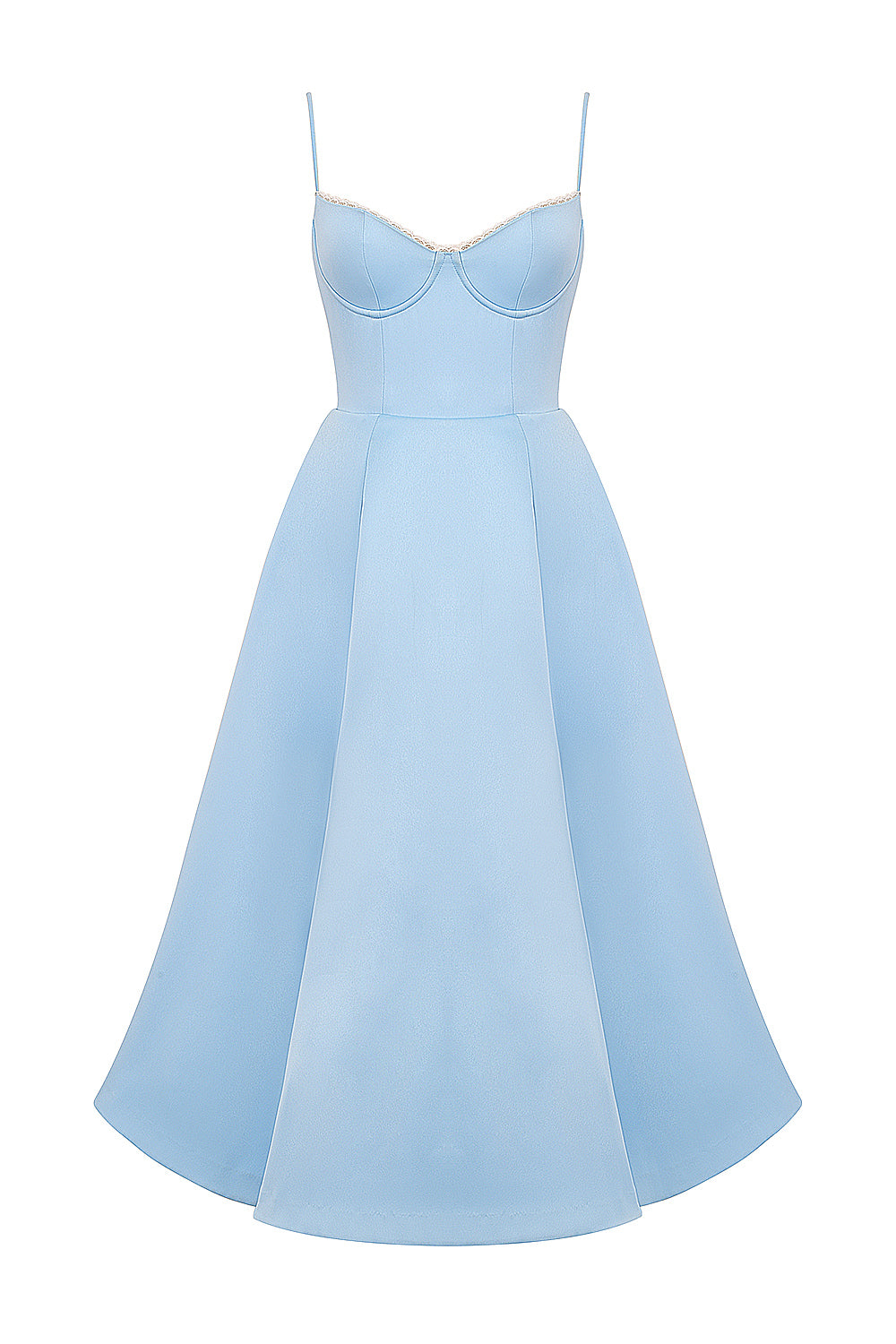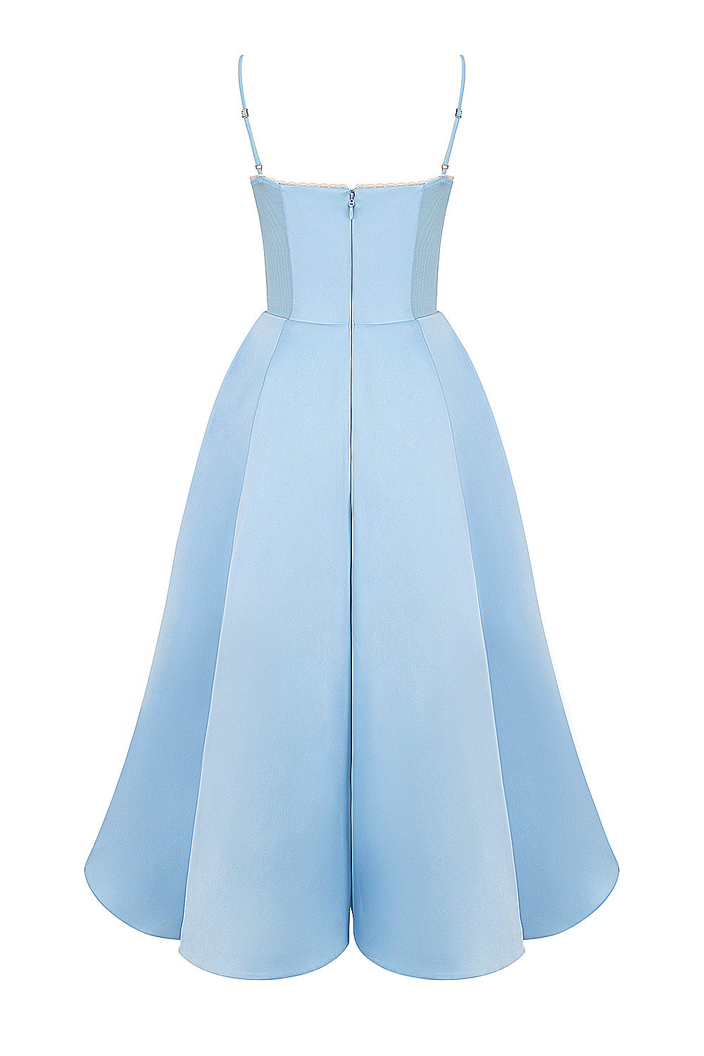 Cut from lustrous duchess satin with hint of powermesh, our 'Mademoiselle' dress is what fairytales are made of. The bodice is perfectly boned to cinch your waist and has a pretty sweetheart neckline with underwired cups. The delicate straps adjust for the perfect fit and 'Mademoiselle' is all about the floaty midi skirt, fitted with a voluminous layer of the softest tulle for a stunning look that keeps the shape beautifully.