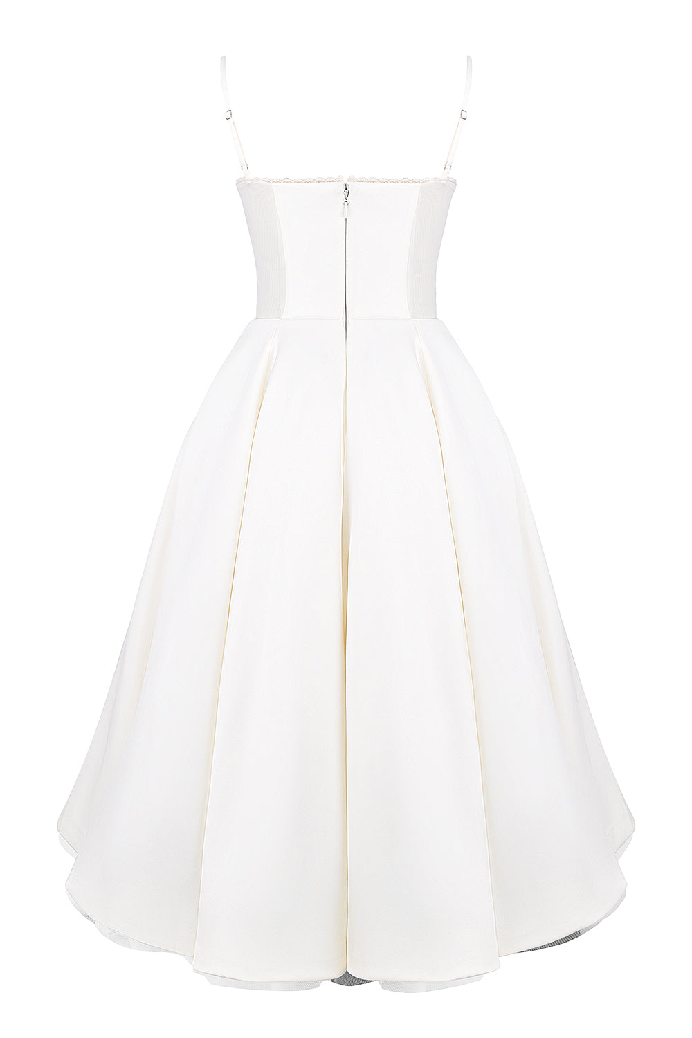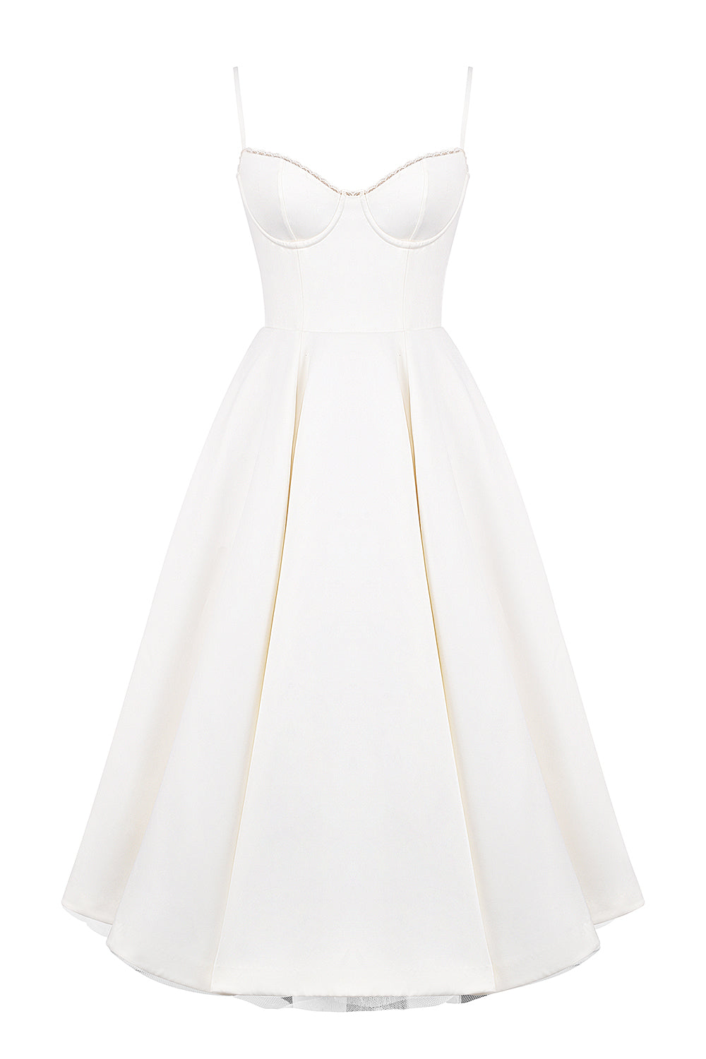 Cut from lustrous duchess satin with hint of powermesh, our 'Mademoiselle' dress is what fairytales are made of. The bodice is perfectly boned to cinch your waist and has a pretty sweetheart neckline with underwired cups. The delicate straps adjust for the perfect fit and 'Mademoiselle' is all about the floaty midi skirt, fitted with a voluminous layer of the softest tulle for a stunning look that keeps the shape beautifully.