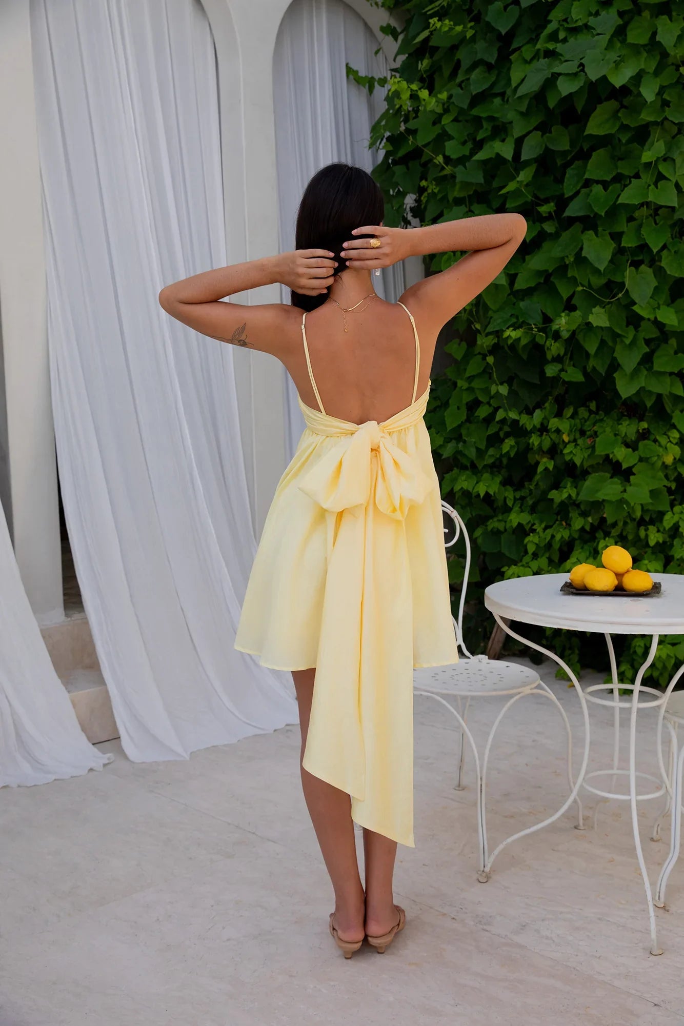 Feel irresistible in the Midnight Charm Mini Dress in Yellow, where playful meets chic. This dreamy black dress features a ruched bust and adjustable tie-back, creating a silhouette that’s as flattering as it is comfortable.