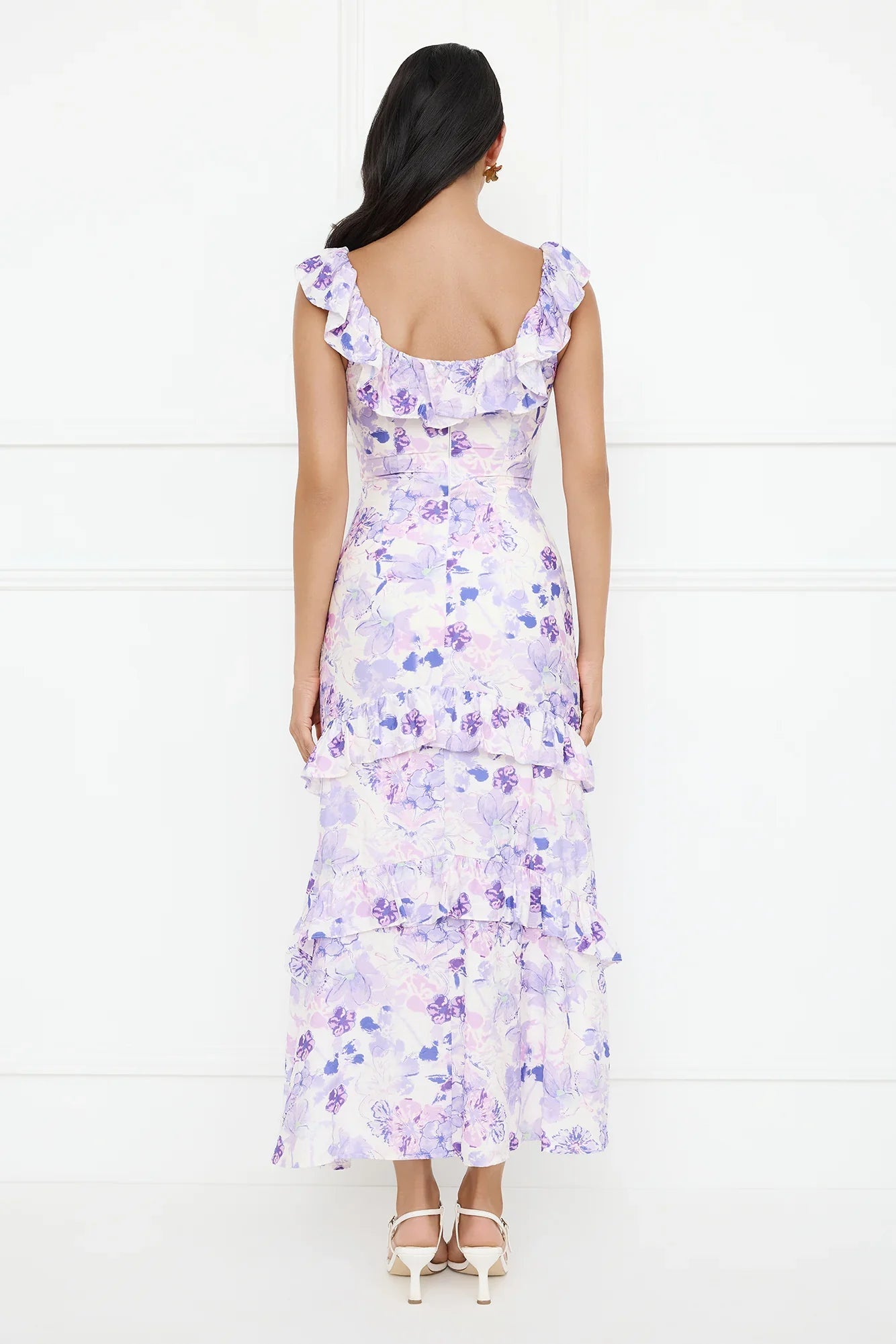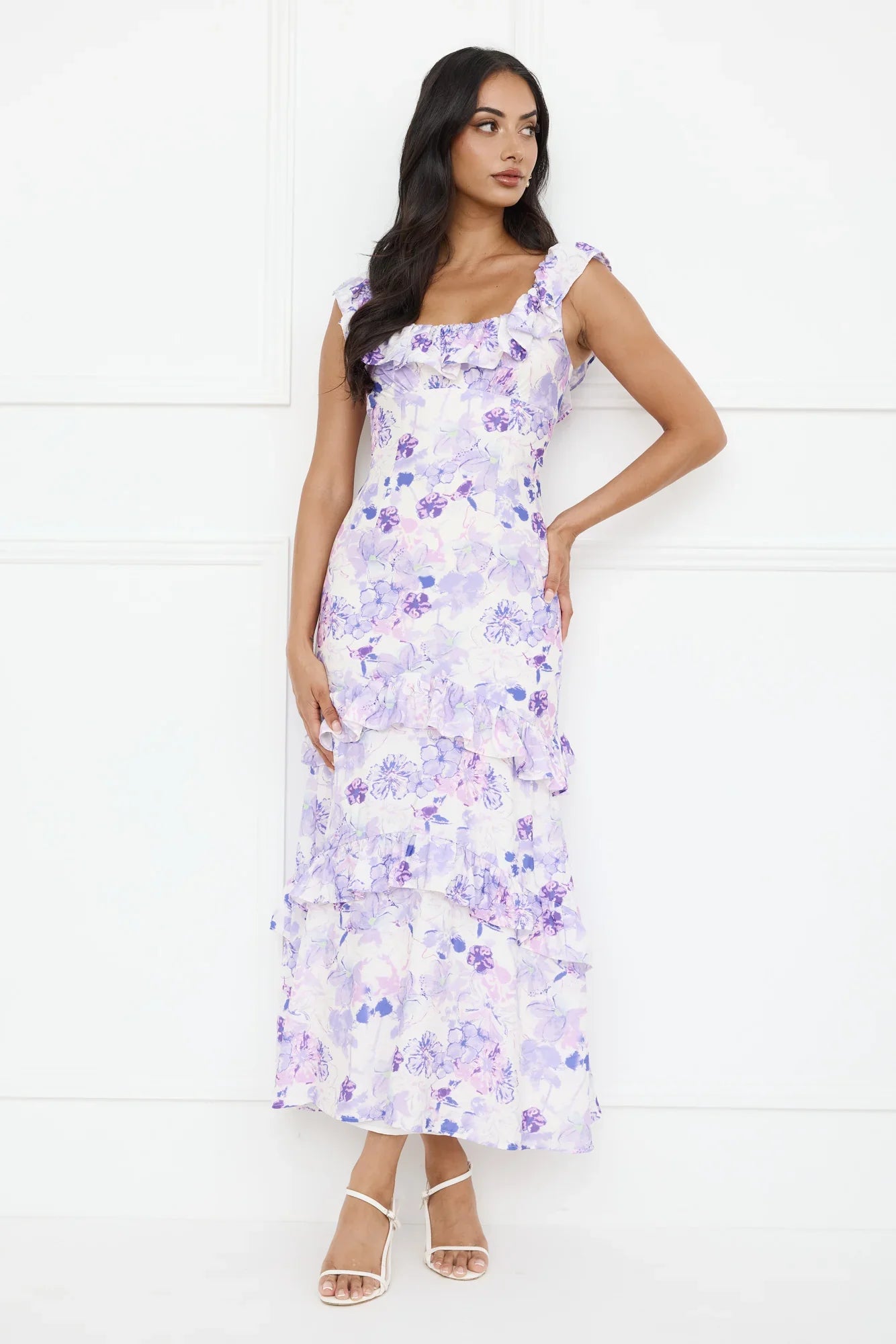 Make a statement in the Midnight Magnolia Maxi Dress. With frill shoulders, a delicate frill neckline, and a tiered frill skirt, this elegant maxi is all about effortless romance. Style with heels for a timeless, sophisticated look.