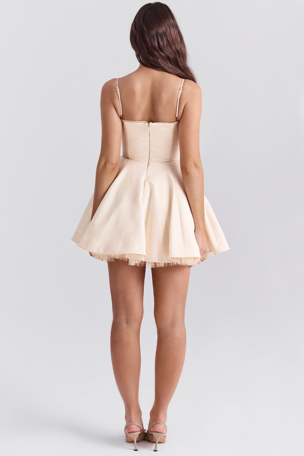 This fairytale creation is the mini version of our 'Mademoiselle' dress. The bodice is boned to perfectly cinch your waist and has a pretty sweetheart neckline with underwired cups. The delicate straps adjust for the perfect fit and 'Minimoiselle' is all about the floaty mini skirt, fitted with voluminous layers of the softest tulle to keep the shape beautifully. We love how it has pockets and is fully lined for comfort with a zip to the back for easy on.