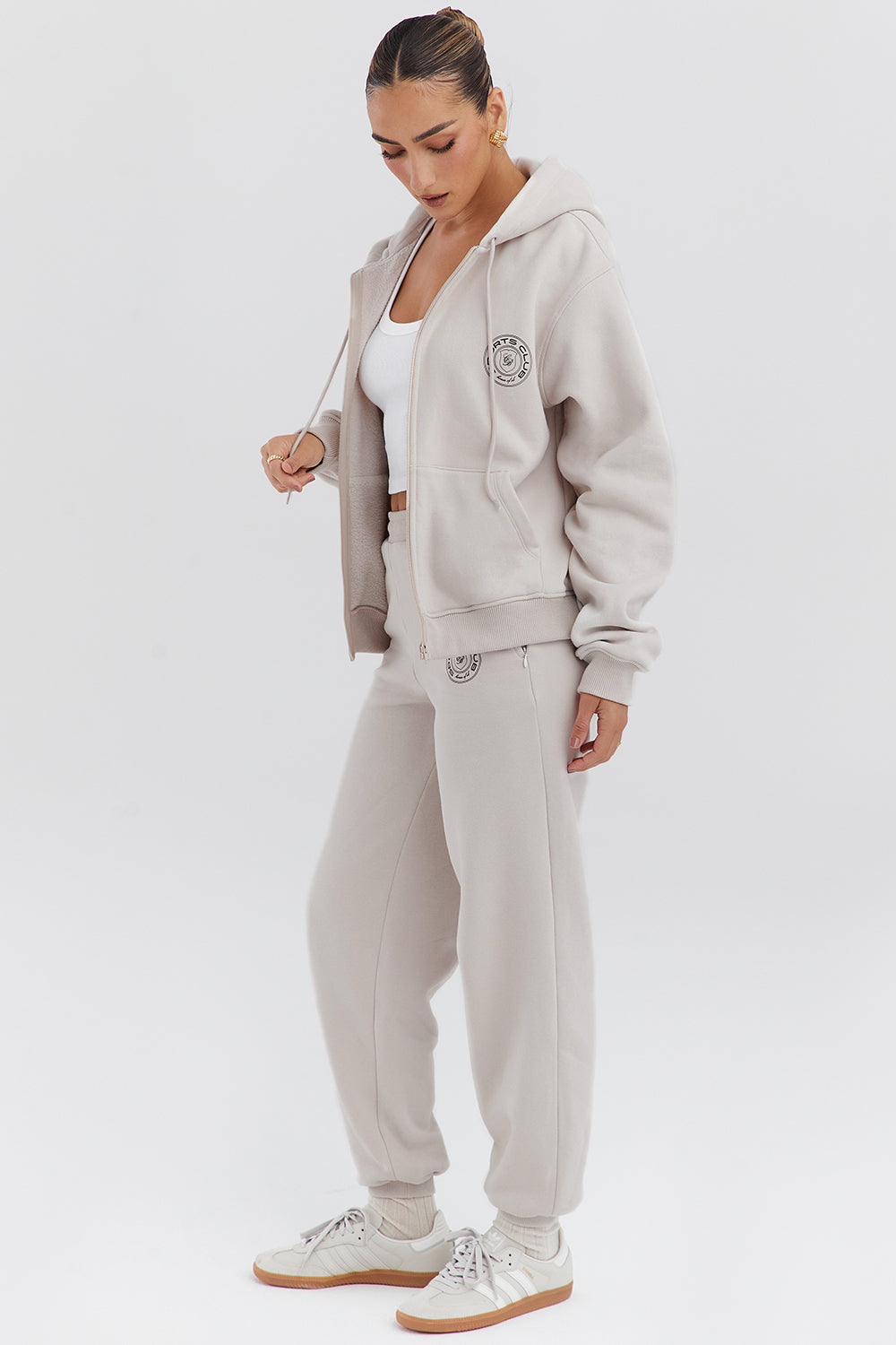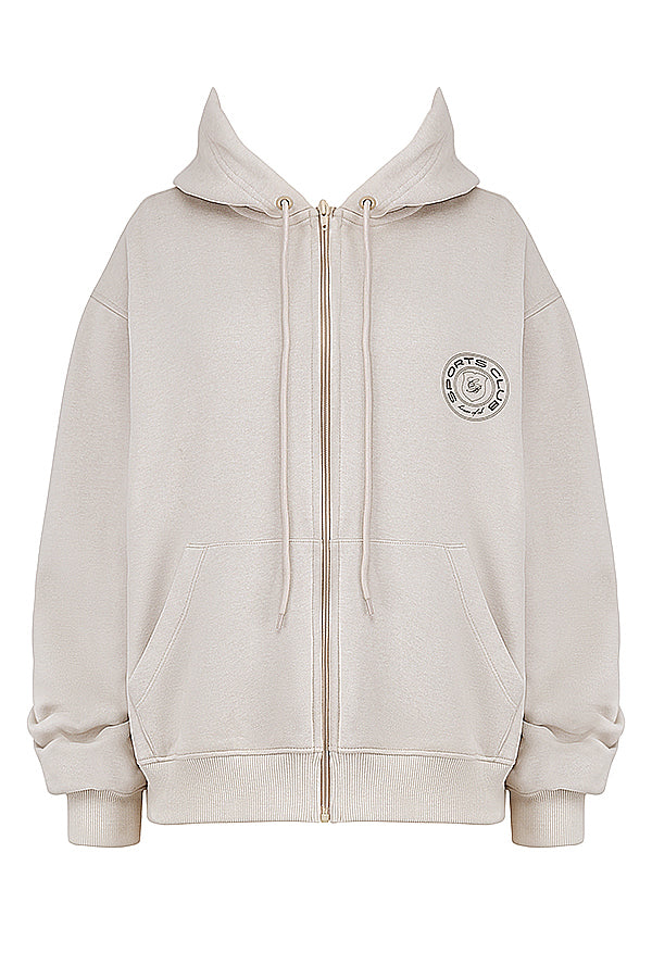 Zipping through the front for easy on, 'Mirage' is stamped with our new and unique HOCB Sports Club logo to the chest. Complete with a ribbed hem and cuffs for added warmth, pair yours with our 'Coast' joggers in cloud for looking stylish with minimal effort this winter.