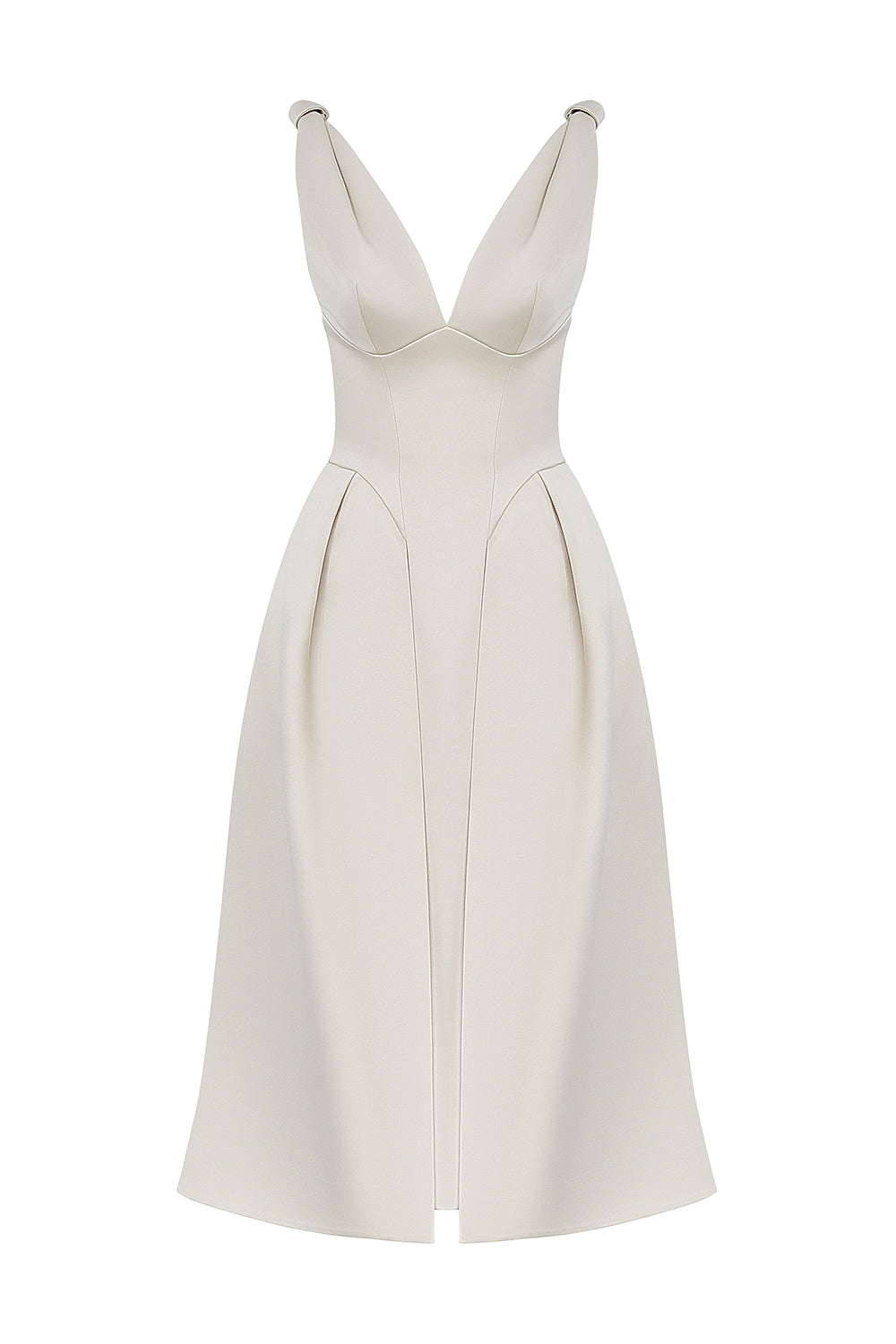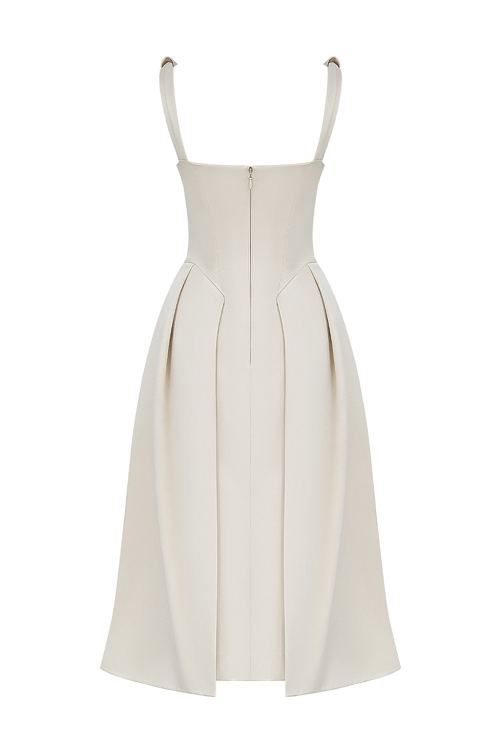 Paloma Vintage Cream Satin Pleated Midi Dress - SALE