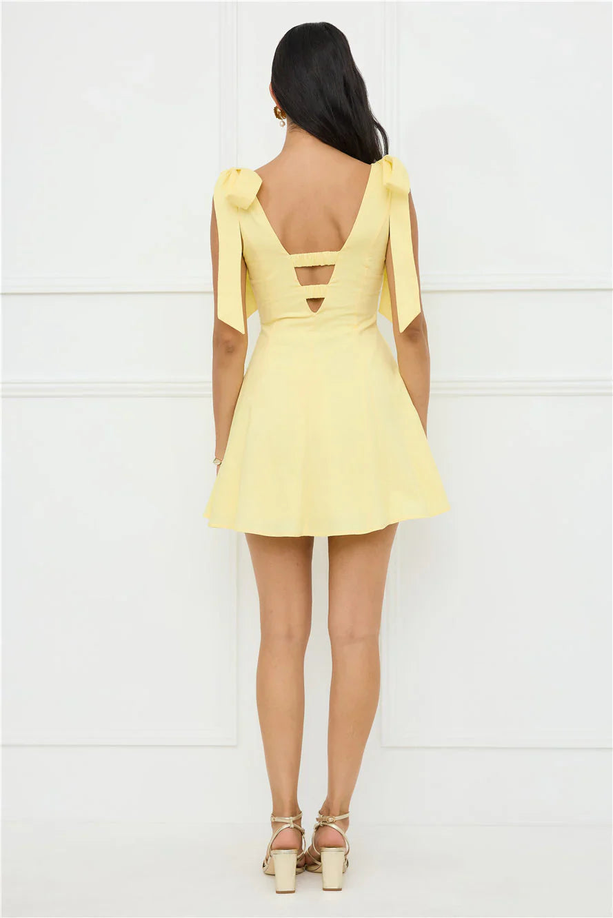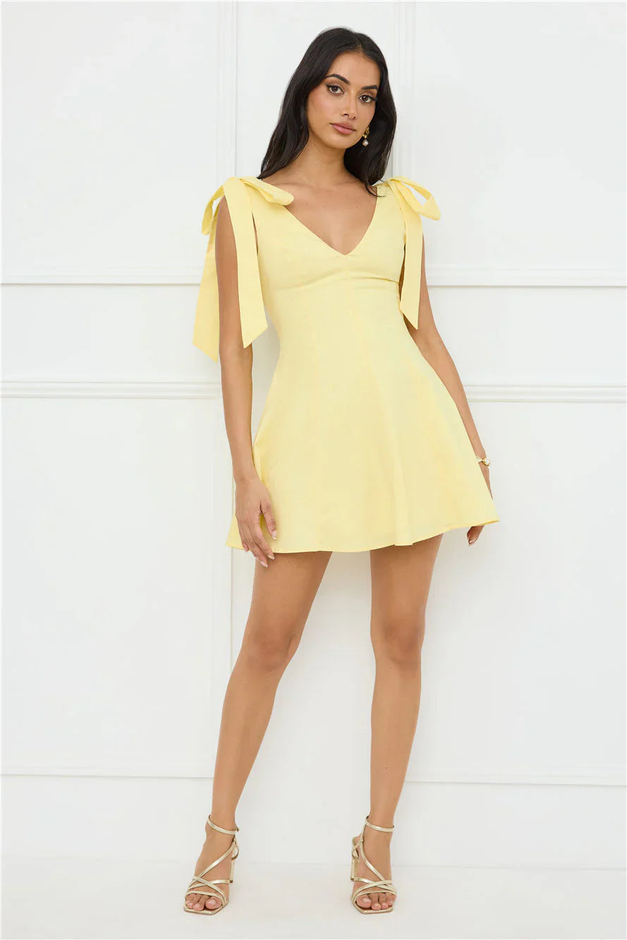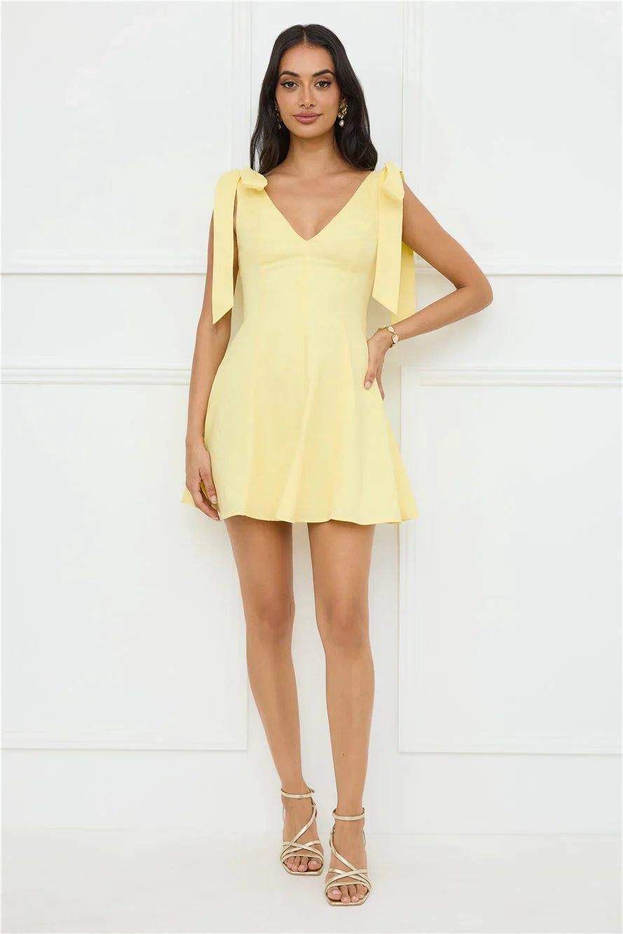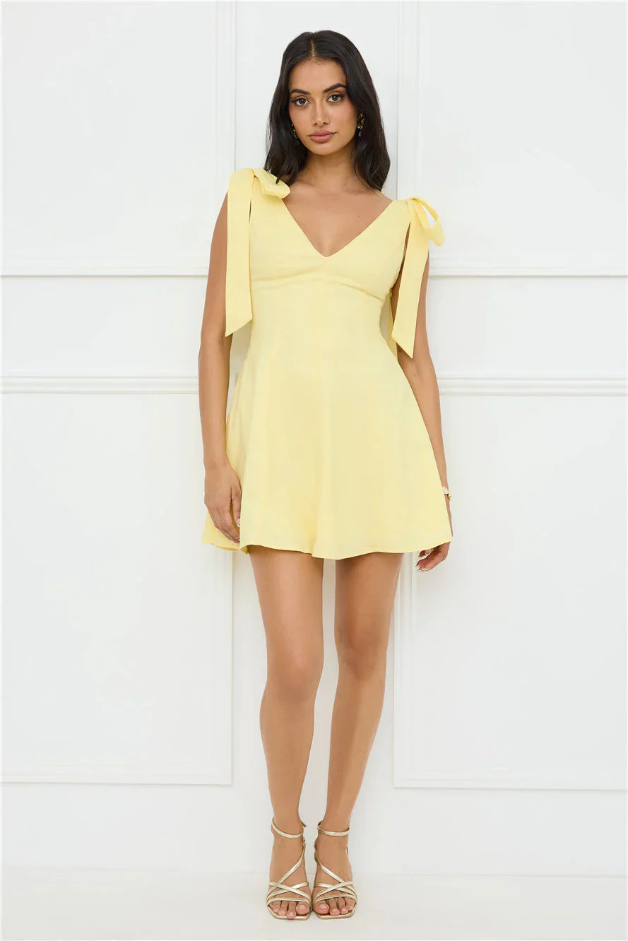 Embrace effortless charm in the Pretty In Power Mini Dress, designed with an elastic back, flowy skirt, shoulder ties, and a flattering V-neck and back for a perfect blend of comfort and style. Pair with heels!