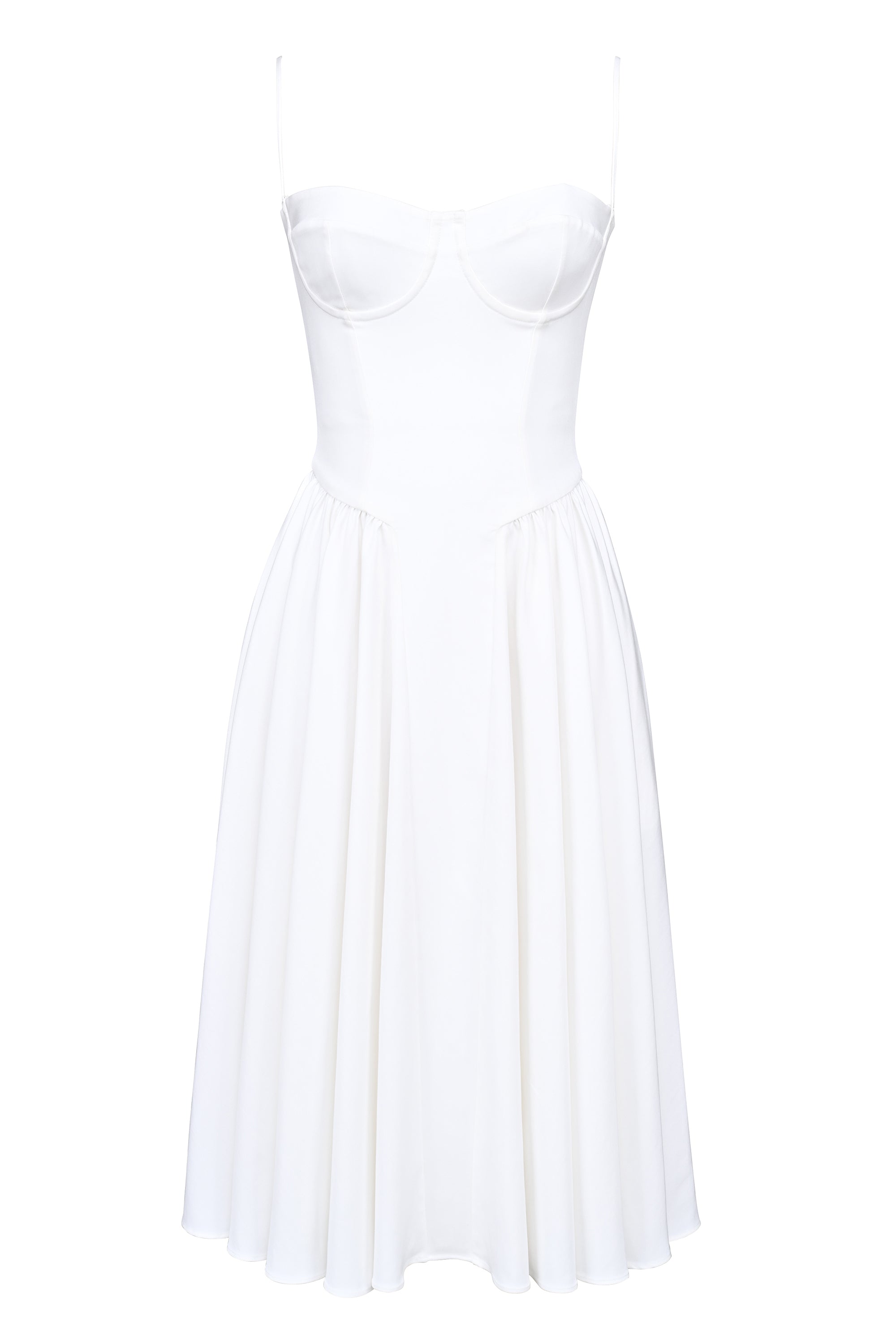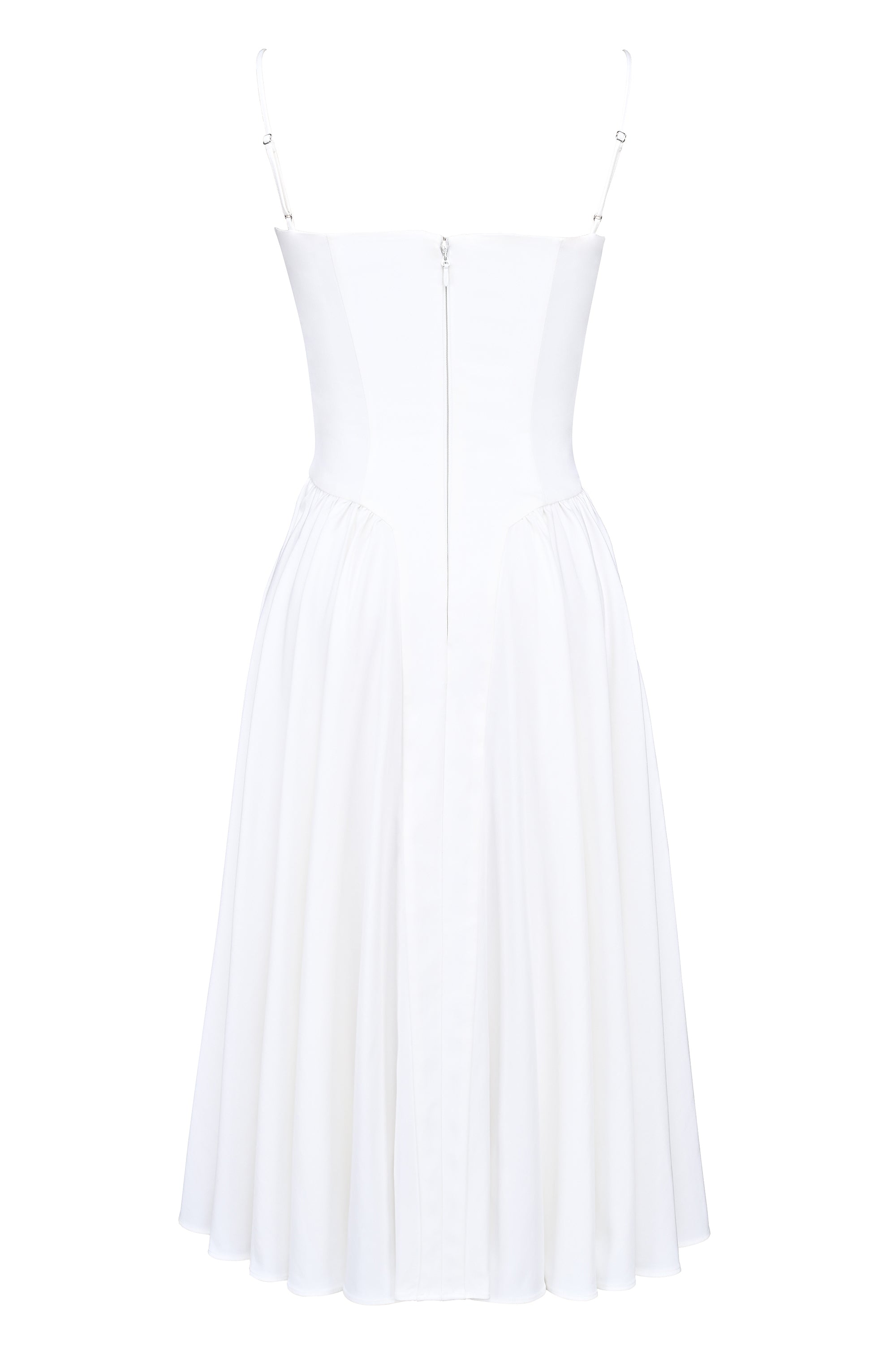 Dressing up is always fun in the 'Samaria' Dress. This elegant midi-length style is made from a soft peached twill with panels in the skirt creating a soft volume (there's even secret side pockets). The bodice is boned in a way that expertly hugs your figure and the spaghetti-style straps are a cute nod to 90s styling. At House of CB, fit is everything – this one is available in two cup sizes and features a centre back zip.