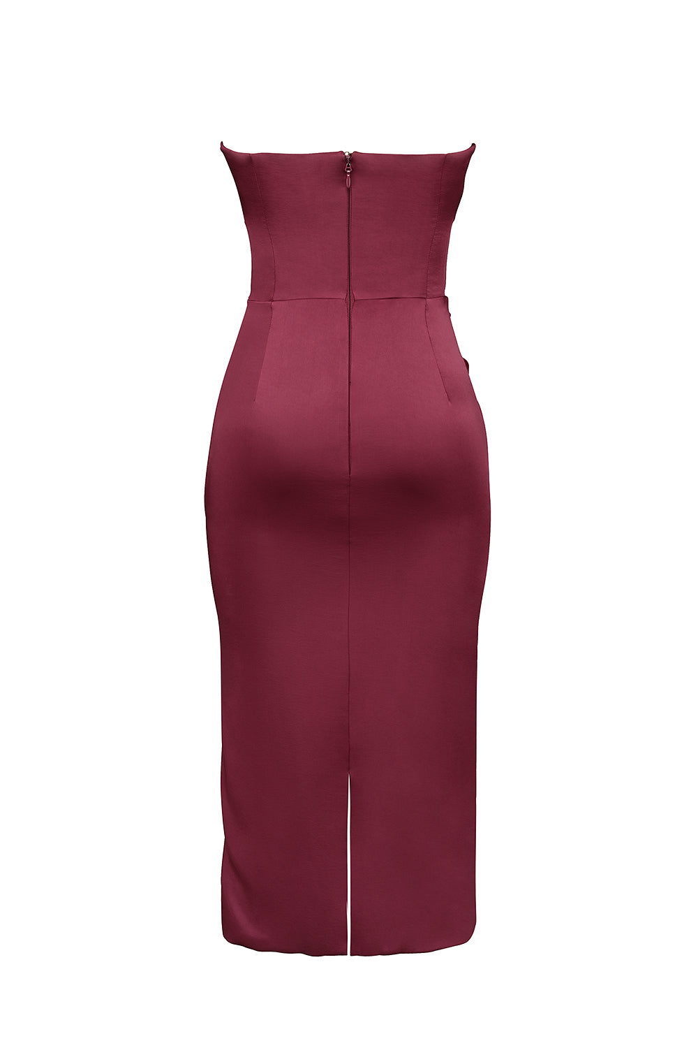 HOCB’s 'Santana' Berry strapless satin midi dress redefines elegant evening wear for your most special events. Crafted from luxurious duchess satin with a lustrous finish, 'Santana' offers a beautifully draped, strapless fit that highlights sophistication and style. The sculpted bodice features internal corsetry and larger cup options to enhance and define the waist, providing a flattering, comfortable fit for both regular and fuller busts. Designed with a back zipper for easy on and off, this formal satin midi dress pairs effortlessly with neutral heels for a complete, refined look. Perfect for weddings, galas, and evening occasions, 'Santana' is the ultimate choice for making a lasting impression.