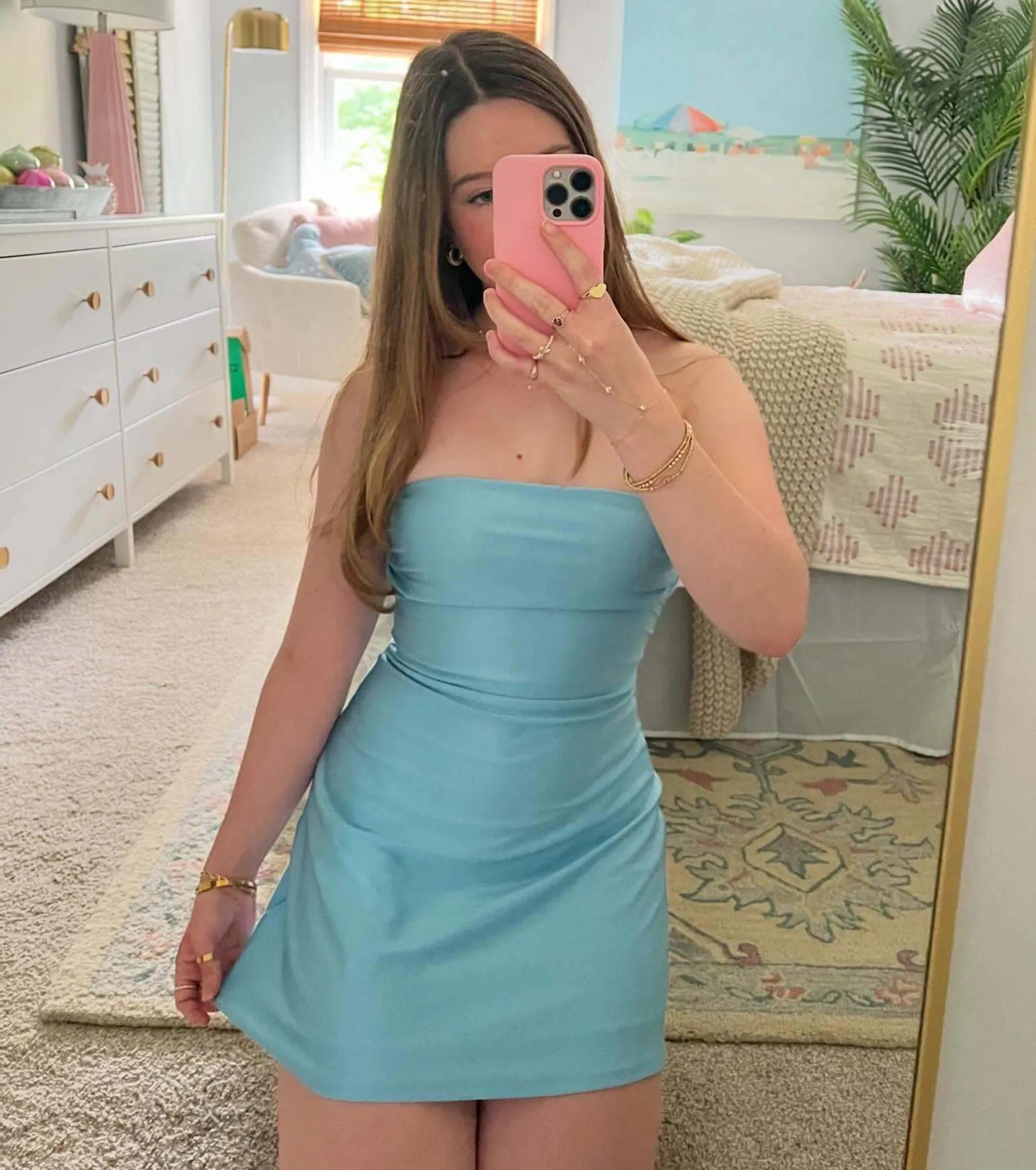 This adorable strapless A-line mini dress is so your vibe! Designed with a stretchy lined knit fabric, it features a strapless straight-across neckline, chic pleated detailing at the bust, and a flirty flowy A-line silhouette on the mini-length hem. Style for a girl's night with statement earrings and .