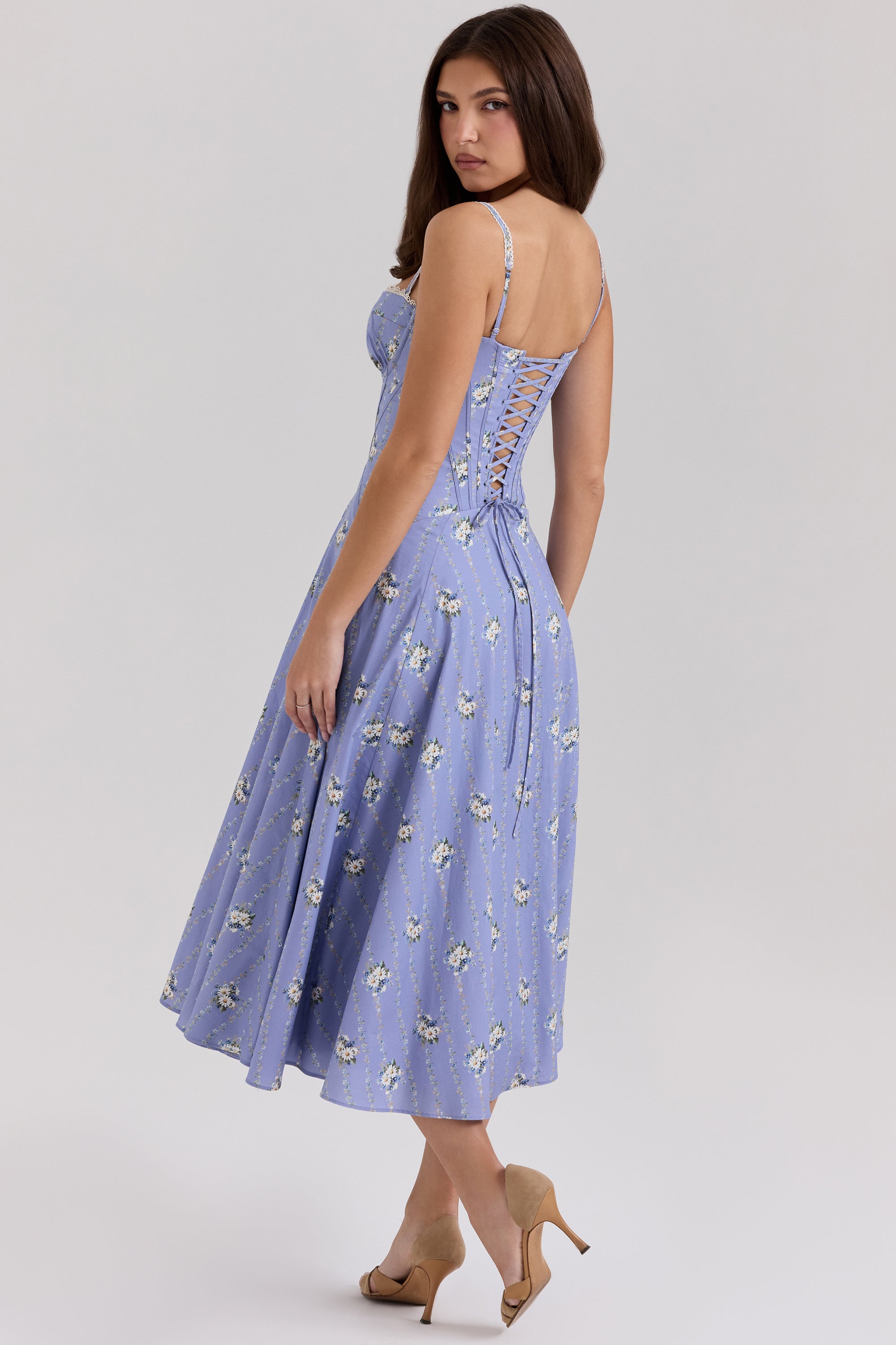 Steffani Blue Daisy Print Stretch Cotton Midi Sundress